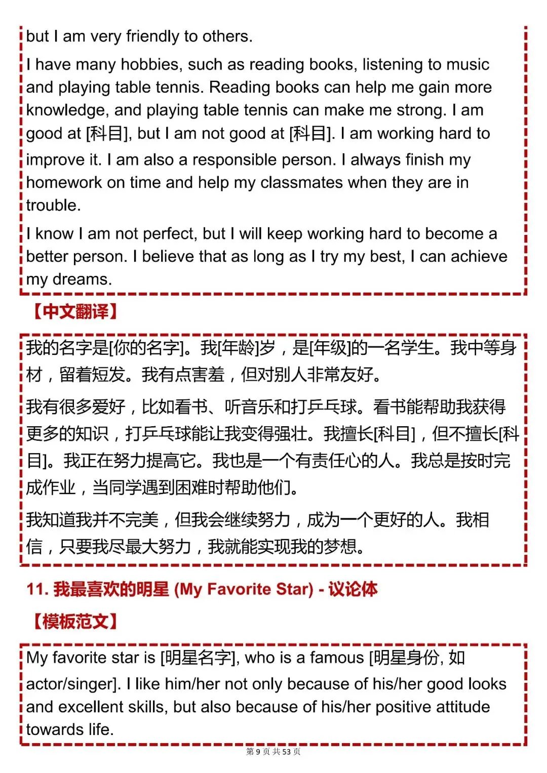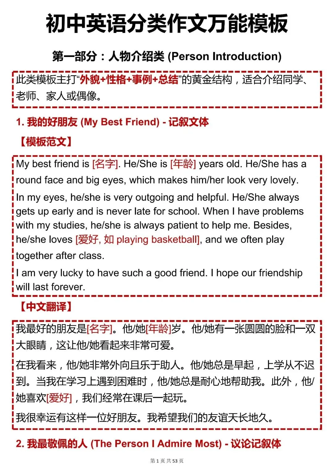 今天给大家整理了中考必备的【初中英语分类作文万能模板】,覆盖人物介绍、校园活动、家庭生活、爱好梦想、书信应用等全场景,不管题目如何变式,都能精准套用,轻松拿下高分!