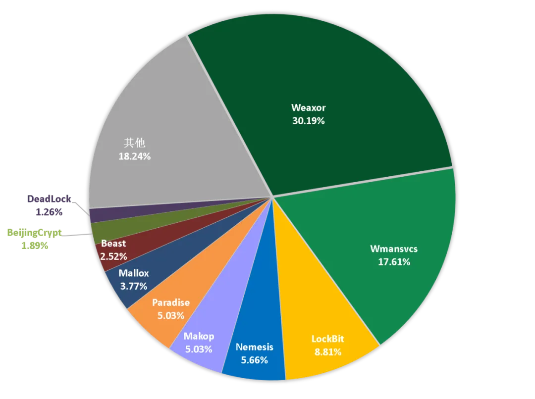 2026年3月通过数据泄露获利的勒索软件家族占比