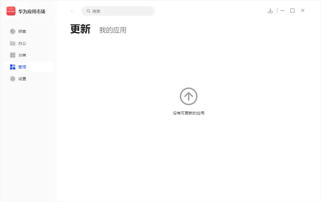 点击左边的“管理”,能看到需要更新的内容以及在华为应用市场下载的软件。