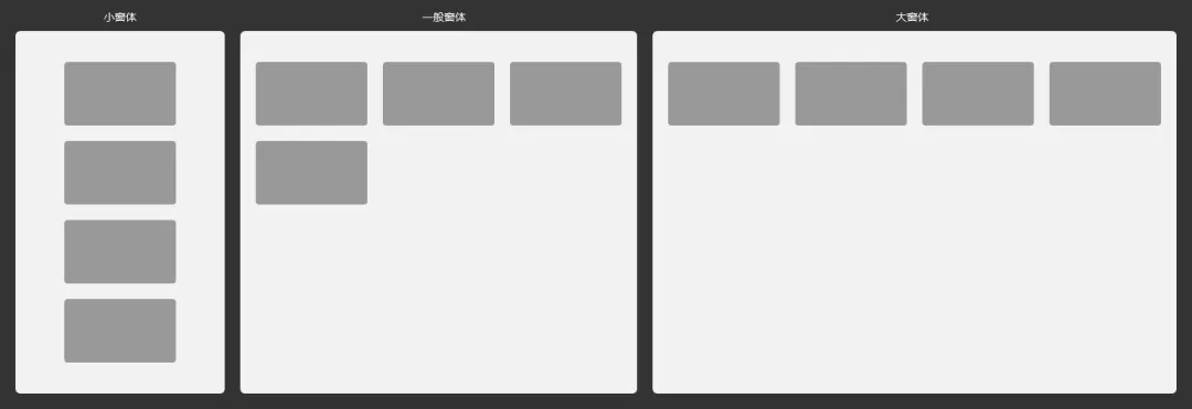 此种适配规则是目前客户端和web最常用的适配规则,这种方式可以保证在一定窗体尺寸下,用户能尽可能多地获取信息,极大提高了屏效,也可以规避超过某个窗体尺寸后,内容区域无限拉伸造成的视觉动线过长进而引起视觉疲劳的问题。一般元素与元素之间、卡片与卡片之间的间距会设为固定间距,无论其他内容如何响应,固定间距始终保持不变。下图中1~9处,都是固定间距。为了防止页面抖动,也会把一些元素或卡片的尺寸设为固定尺寸。下图中10、11、12、13处,搜索组件、banner、待办模块、日志模块都为固定尺寸,这样处理既保证了页面的稳定性,又减轻了适配工作量。至于固定尺寸定为多少,就要看最小窗体尺寸承载多大的元素能保证视觉效果依然出色。1.卡片位置变化;此种变化规则多适用于九宫格卡片布局,当窗体拉大时,一行多排几张,当窗体缩小时,一行少排几张,溢出的换行展示。2.卡片展示方式(布局)改变;此种变化规则多适用于跨终端的响应式设计。电脑端的布局往往无法直接塞进手机端界面上,这时候就需要改变元素的大小、形状、数量、位置等属性,呈现出带来愉悦体验的移动端布局。这里看似两套界面,实则是基于一套界面再通过代码修剪出来的另一套界面,跟自适应需要设计两套界面再根据视口分辨率分别请求界面的原理是不一样的。3.卡片数量改变。此种变化规则多适用于跨终端的响应式设计。比如说web上可以展示8个热门产品,到移动端,因为屏幕空间有限,首屏只能展示4个热门产品,其他要用抽屉收起来,这时候就需要跟运营或业务同事沟通橱窗产品的取舍问题。卡片布局是十分常见的响应式布局,也是响应式栅格系统运用最多的地方,感兴趣的朋友可以深入了解一下栅格系统,这里不再铺开解析。