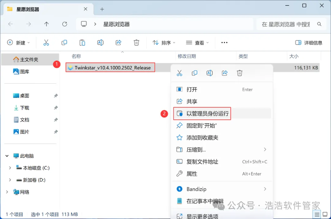 3、找到【星愿浏览器】应用程序,右键选择【以管理员身份运行】它