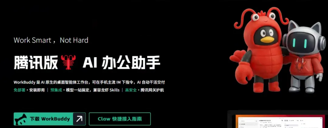 免部署,安装即用预集成主流模型,兼容“龙虾 Skills”腾讯网关护航,企业级安全保障
