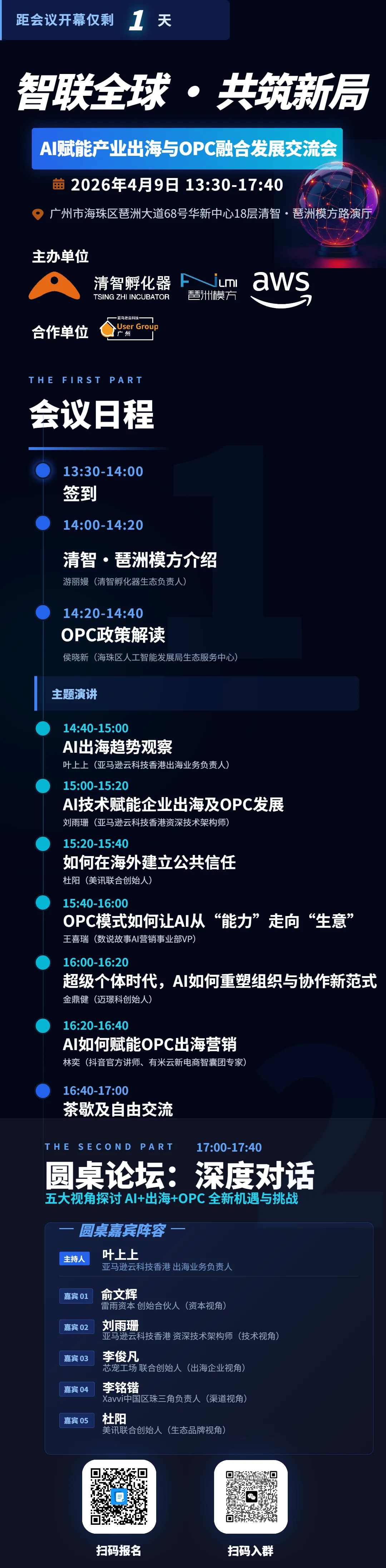倒计时1天 | AI赋能产业出海与OPC融合发展交流会,明日启幕