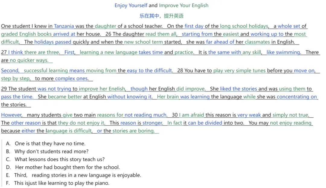 更关键的是,整整70分都是选择题。这意味着,即使文章不能百分百看懂,我们依然有大量的机会,通过一些巧妙的方法找到正确答案。