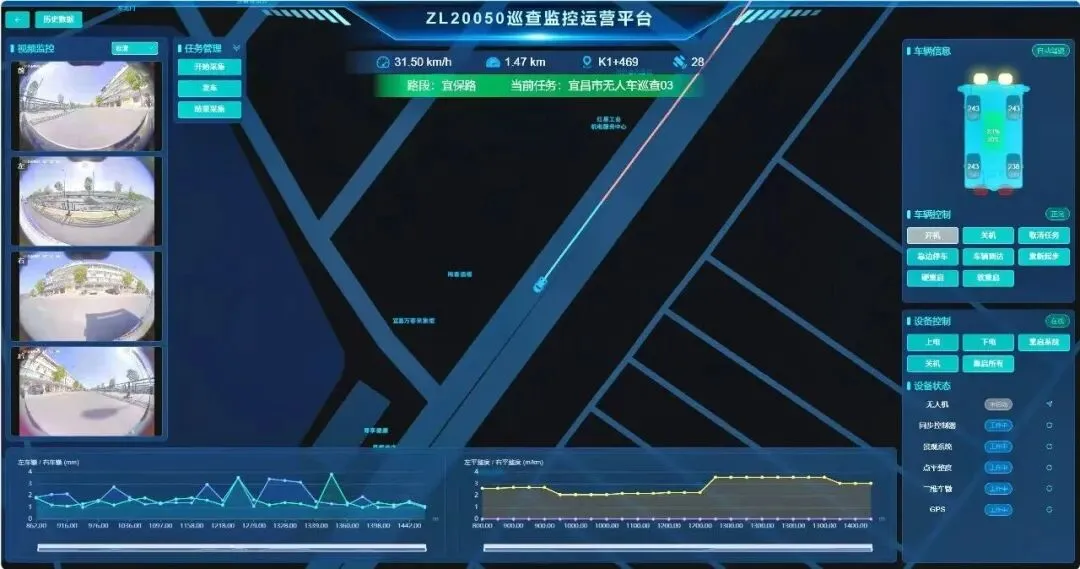 4月3日,在夷陵区黄花镇黄新线上,宜昌虹源检测有限公司路况检测负责人梁沧海轻点电脑,提前规划好的巡查路线瞬间传至车载系统。道路AI智能巡查设备随即自动起步,匀速行驶。