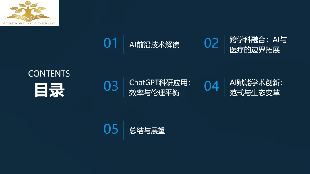 本次线上研讨会系统地介绍了AI技术在医疗健康领域的技术前沿、应用现状、伦理挑战、治理框架及对学术研究的赋能作用。内容涵盖了大语言模型、多模态AI、强化学习三大技术支柱,并探讨了AI在辅助诊断、患者管理、药物研发、手术规划等多场景的具体应用。同时,谭建博士就AI的伦理原则、全球治理模式、以及研究者如何利用ChatGPT等AI工具提升科研效率进行了深入解读,并对未来“人机协同”的科研创新范式进行了展望。会议在主题分享后设置了问答环节。