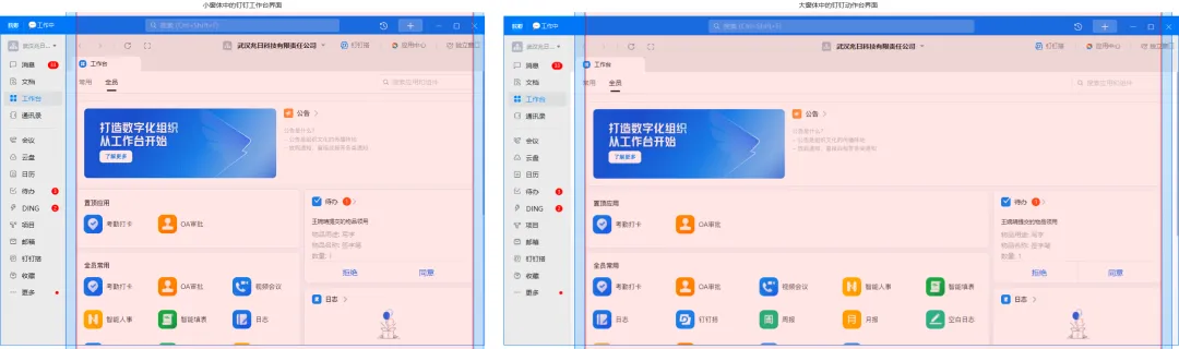 钉钉PC端响应式适配设计,研究的太透了吧?当拉伸钉钉PC客户端窗体的时候,内容会像流水一样随着窗体的大小改变布局或形状。窗体大小的改变带来的内容布局的调整对于用户来说是无感知的,这种丝滑自然的体验得益于钉钉PC客户端响应式的适配方案。流水一样的响应式设计