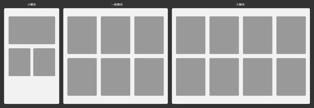 此种适配规则是目前客户端和web最常用的适配规则,这种方式可以保证在一定窗体尺寸下,用户能尽可能多地获取信息,极大提高了屏效,也可以规避超过某个窗体尺寸后,内容区域无限拉伸造成的视觉动线过长进而引起视觉疲劳的问题。一般元素与元素之间、卡片与卡片之间的间距会设为固定间距,无论其他内容如何响应,固定间距始终保持不变。下图中1~9处,都是固定间距。为了防止页面抖动,也会把一些元素或卡片的尺寸设为固定尺寸。下图中10、11、12、13处,搜索组件、banner、待办模块、日志模块都为固定尺寸,这样处理既保证了页面的稳定性,又减轻了适配工作量。至于固定尺寸定为多少,就要看最小窗体尺寸承载多大的元素能保证视觉效果依然出色。1.卡片位置变化;此种变化规则多适用于九宫格卡片布局,当窗体拉大时,一行多排几张,当窗体缩小时,一行少排几张,溢出的换行展示。2.卡片展示方式(布局)改变;此种变化规则多适用于跨终端的响应式设计。电脑端的布局往往无法直接塞进手机端界面上,这时候就需要改变元素的大小、形状、数量、位置等属性,呈现出带来愉悦体验的移动端布局。这里看似两套界面,实则是基于一套界面再通过代码修剪出来的另一套界面,跟自适应需要设计两套界面再根据视口分辨率分别请求界面的原理是不一样的。3.卡片数量改变。此种变化规则多适用于跨终端的响应式设计。比如说web上可以展示8个热门产品,到移动端,因为屏幕空间有限,首屏只能展示4个热门产品,其他要用抽屉收起来,这时候就需要跟运营或业务同事沟通橱窗产品的取舍问题。卡片布局是十分常见的响应式布局,也是响应式栅格系统运用最多的地方,感兴趣的朋友可以深入了解一下栅格系统,这里不再铺开解析。