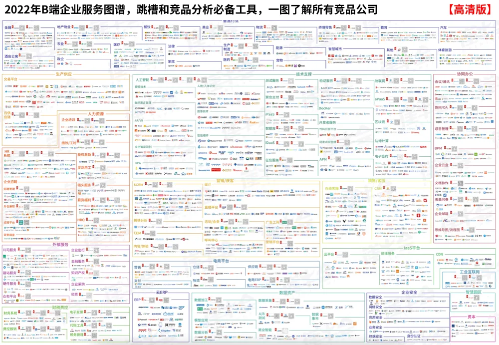 【1】回复“企业”——领2022年B端企业服务图谱(高清跳槽版),B端互联网人跳槽和竞品分析必备工具,一图了解所有竞品公司。