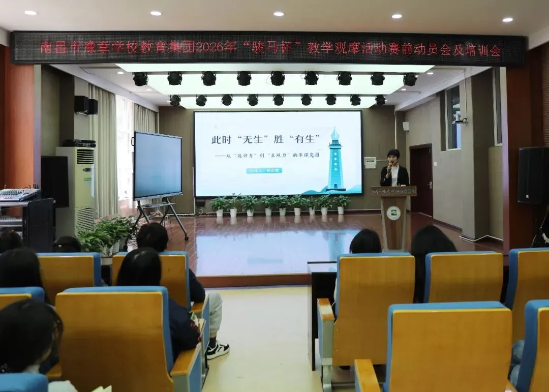 4月7日下午,豫章学校教育集团在紫金校区一楼多媒体教室举行“骏马杯”教学观摩活动赛前专题培训,全体参赛教师与会。本次培训围绕无生课堂设计与AI技术应用两个板块展开。