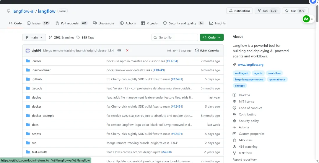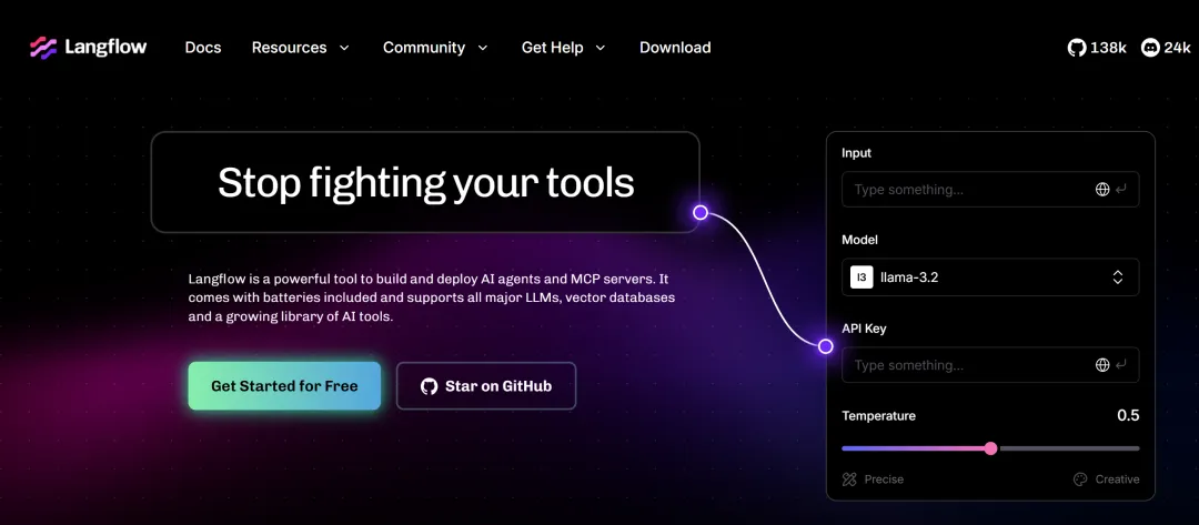 Langflow,GitHub上 77.2k Stars,6.8k Forks。什么概念?同类型工具里,它是断层第一。