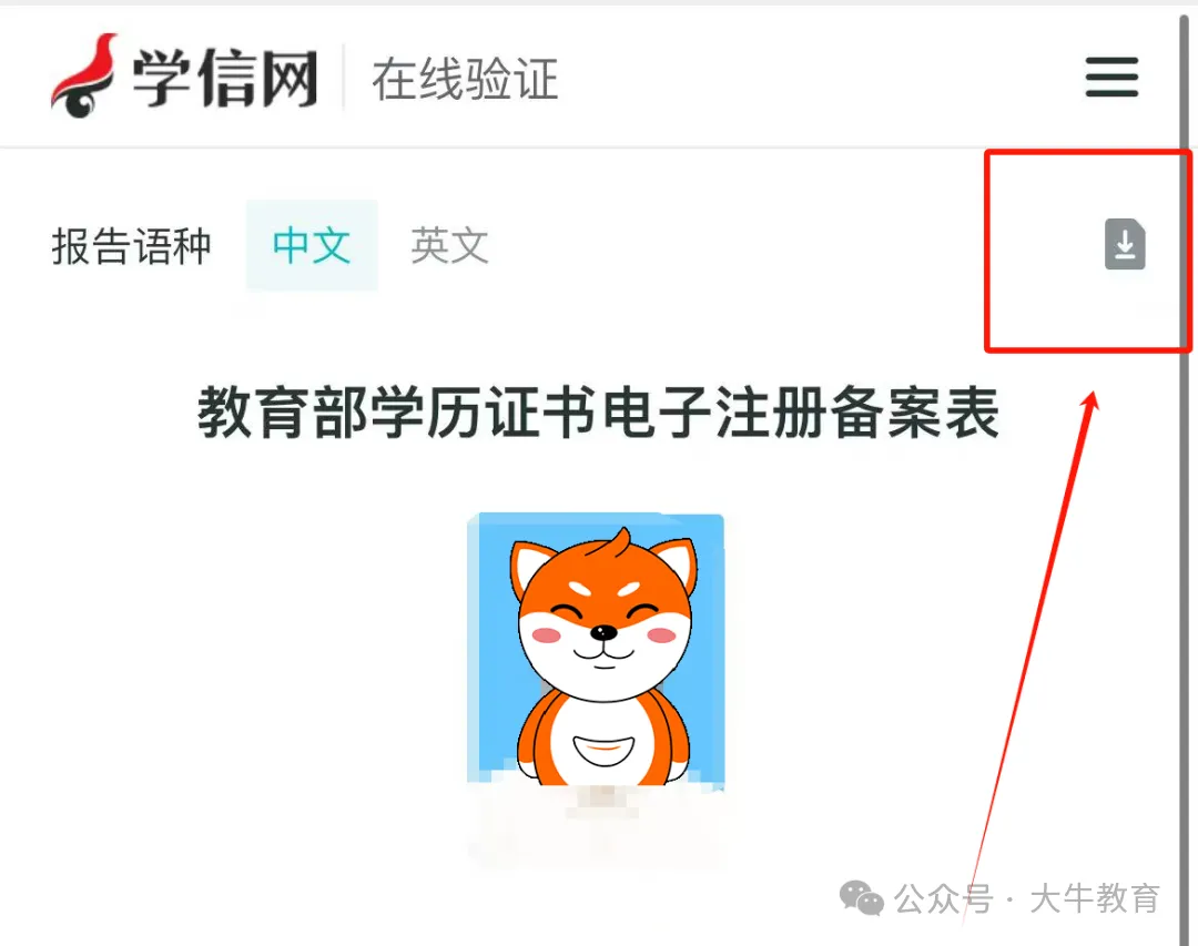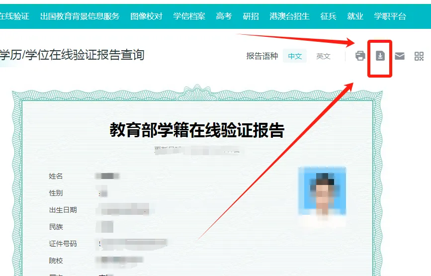 ✅点击右上角的箭头图标,下载《学历证书电子注册备案表》保存即可。