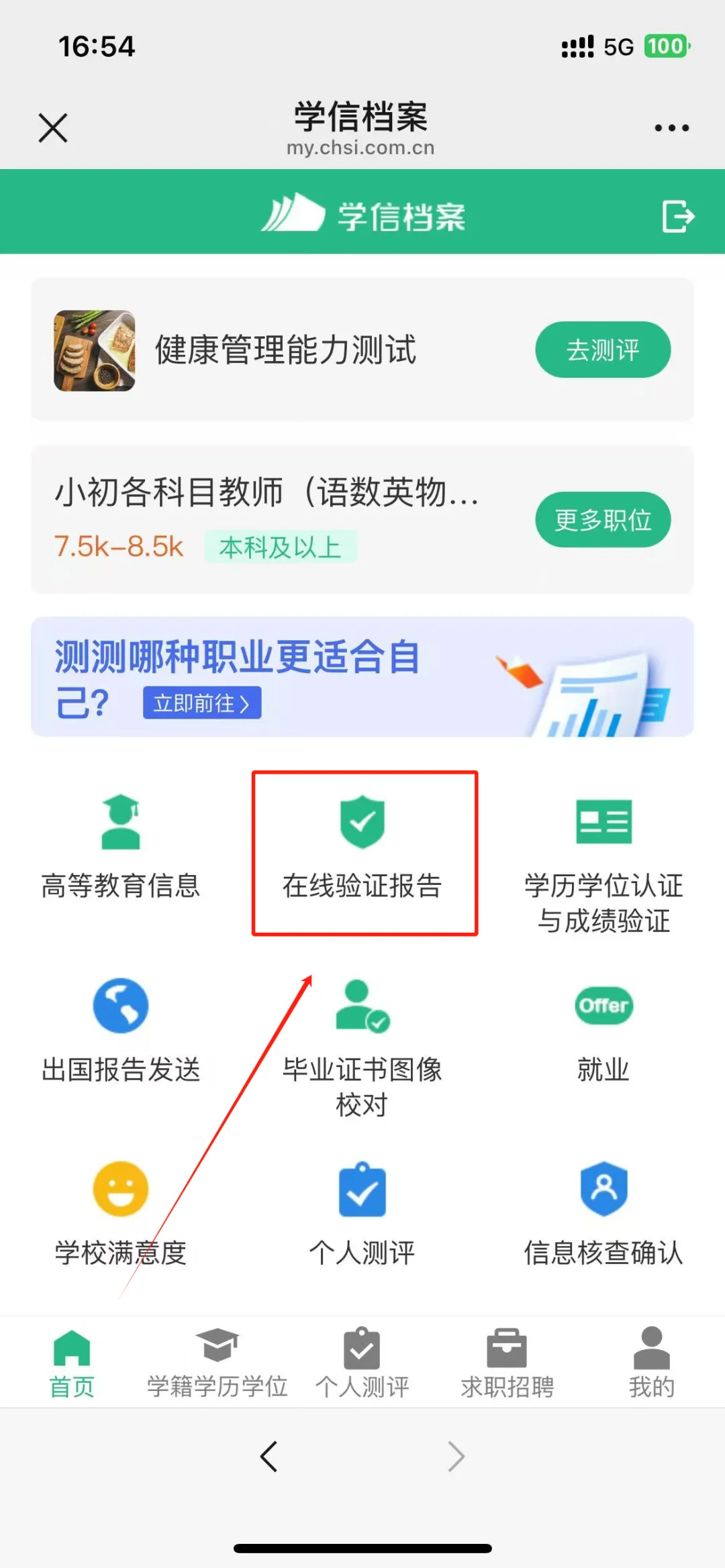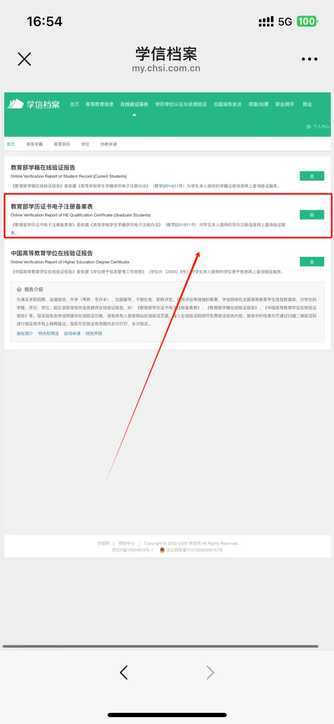 ✅登录成功后,点击在线验证报告。点击选择中间的,教育部学历证书电子注册备案表。