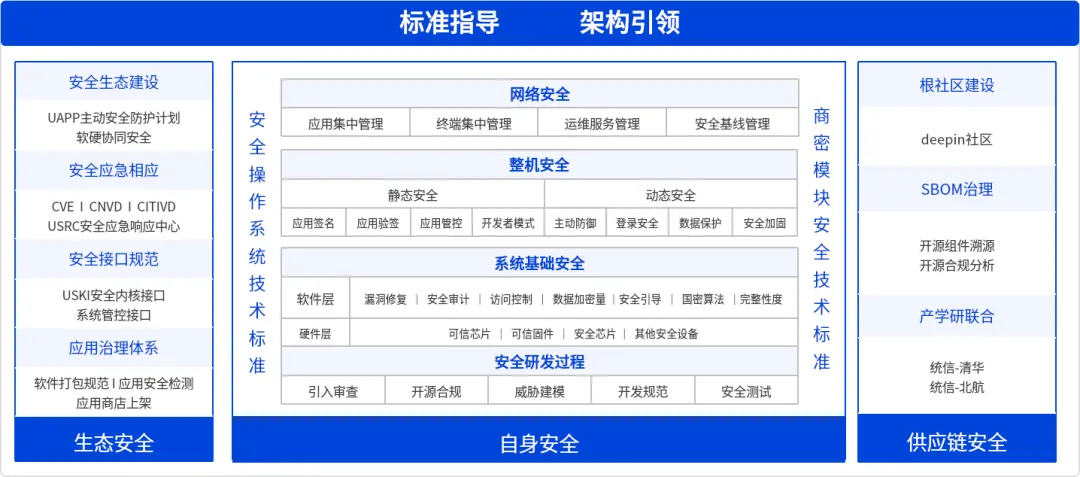 统信软件深知:没有操作系统的自主与安全,产业链的安全便如沙上筑塔。统信软件始终将“安全”刻入产品基因,从源头、自身、生态三个维度构筑起一道立体的安全屏障。