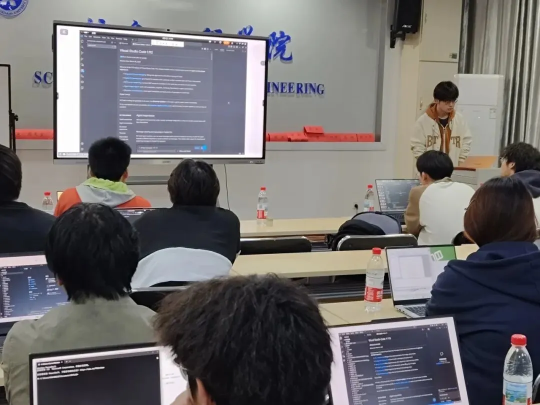 2026年4月1日,为提升协会成员技术素养、拓展人工智能领域视野,智汇AI协会于南二楼401会议室开展人工智能与具身智能技术专题培训会。培训会聚焦前沿技术与实践应用,首先由第一位主讲人李文围绕虚幻引擎游戏开发展开分享,以《原神·空月之歌》为切入点,拆解AI辅助千星奇遇开发流程,解析虚幻引擎5、团结引擎等主流游戏开发工具的应用场景与技术优势,直观呈现AI技术在游戏开发领域的创新价值。第二位主讲人范延哲围绕OpenCode开源工具实操教学,结合Visual Studio Code开发工具,演示核心功能、插件配置及代码编辑调试流程,助力成员搭建高效本地开发环境。第三位主讲人黄佳文聚焦SSH服务器运维,从协议原理出发,讲解远程连接、权限配置、安全防护等核心操作,结合代码演示远程开发与文件传输场景,为成员后续项目部署奠定基础。