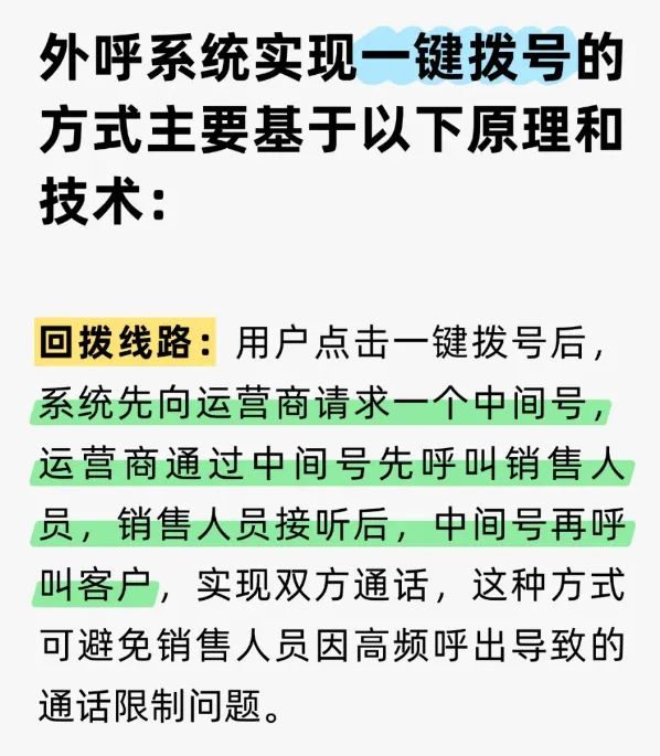 对接线路:不管是回拨线路还是直呼模式,都可以做到高频拨打,降低限制。