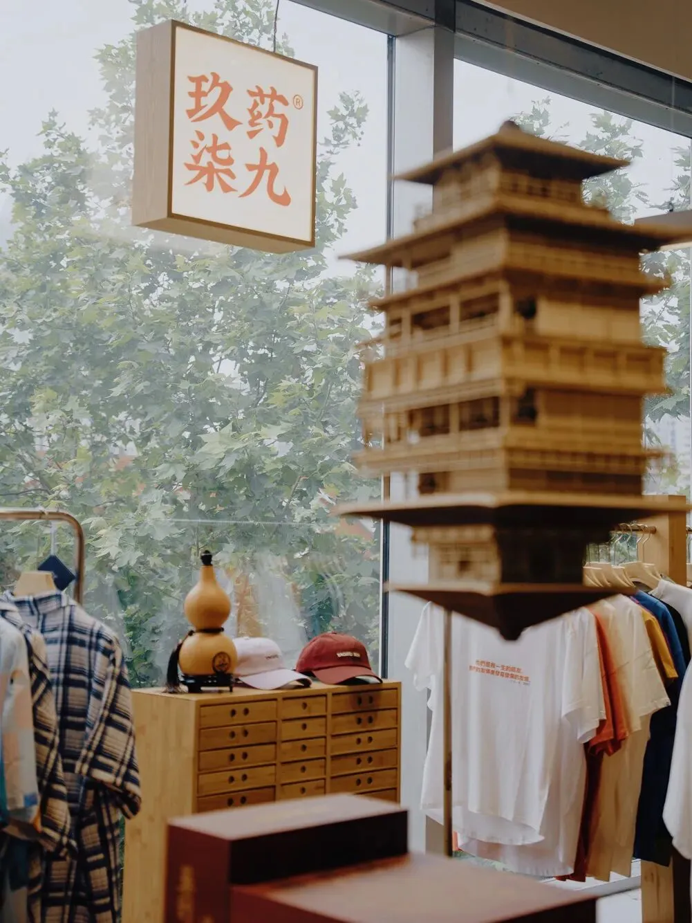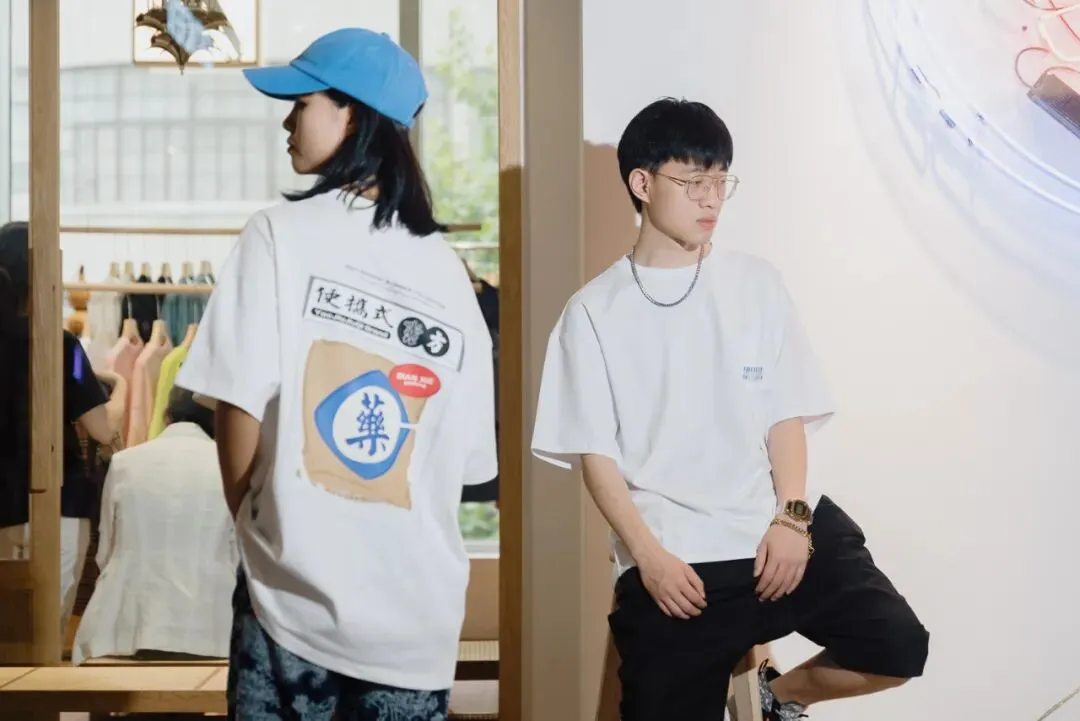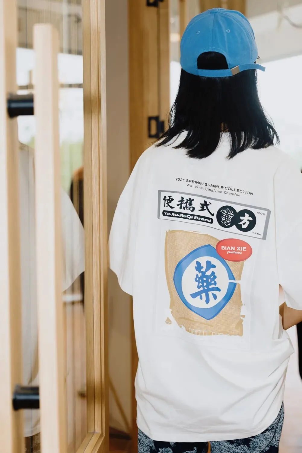 第一家潮牌店是很中国风的「药九玖柒」,拍摄当天自称“中华小当家”的主理人Edison正好在店,于是跟天生Model的傲娇店员aka.“女明星”肖肖共同完成了拍摄。不得不提醒大家,去店里前要喝够水带包金嗓子,随时可以去笑果开放麦大杀四方的主理人真的能把你聊到喉咙冒烟。By the way,主理人给我们大方介绍了商场其他潮牌店认识,一两句话就说服了刚刚不愿意拍摄的其他品牌害羞店员,解决了接下来的拍摄任务,不愧是TX淮海第一名媛交际花。接下来就请欣赏脱口而出张口就来出口成章的女明星&交际花采访实录。