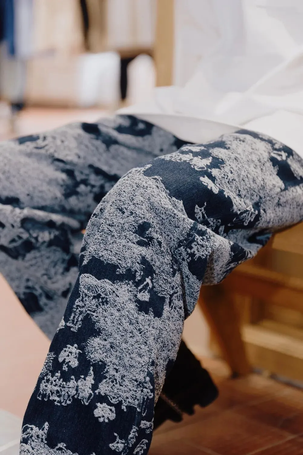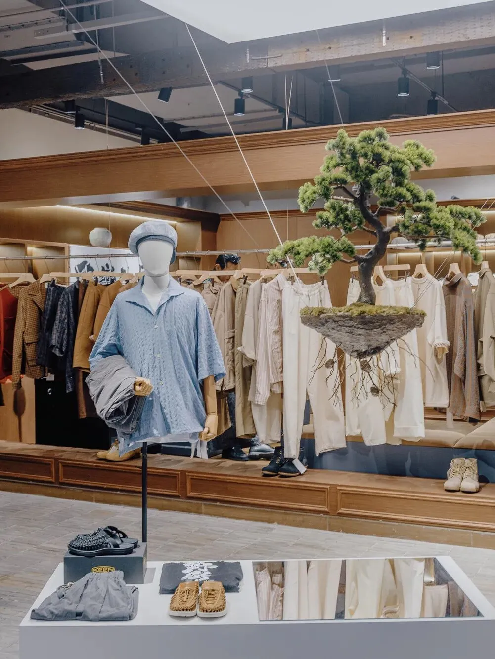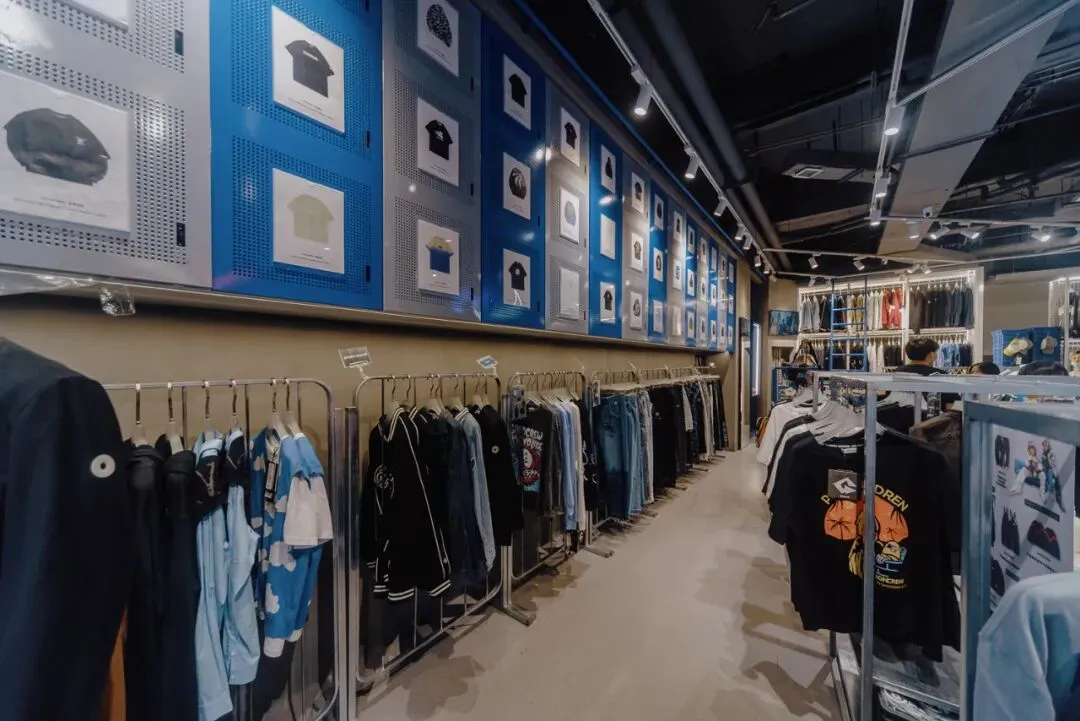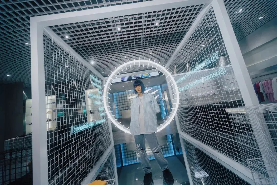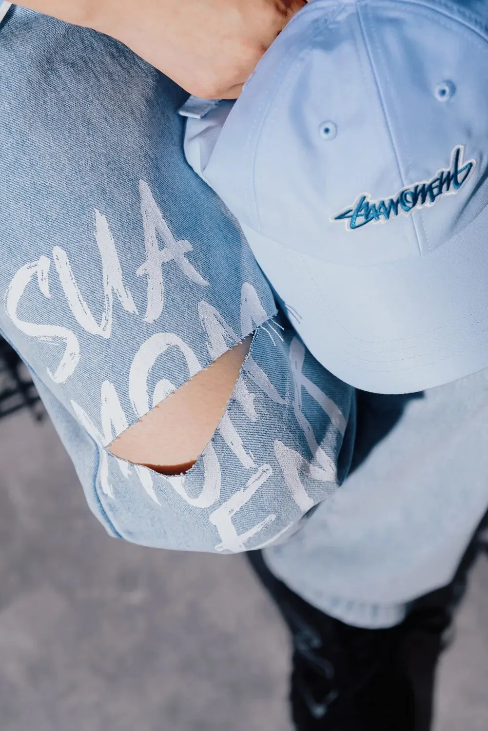 Q:为大家介绍一下今天的Look吧!A:天气渐渐热起来,想搭一套比较清爽的穿搭。帽子、衬衫和裤子都是清凉的浅蓝色,白色内搭的加入增加层次的同时,中和掉同系色块堆积造成的视觉疲劳感。牛仔裤上的破洞和白色涂鸦则透露出不羁和活力。 Q:请用几个词简单形容一下品牌风格A:SUAMOMENT中文名是血爪痕,从logo和店铺陈列就可以看出,我们的品牌调性是偏冷酷锋利和去性别化的。单品设计上,我们也会更多采用简洁的设计和大胆的剪裁,毕竟less is more嘛!Q:店内装修得也太好拍了,最出片的spot在哪里?A:首先当然是店铺C位的logo墙啦,镜面地板的设计坐下来拍你就是超模!还有一个大家容易忽略的地方其实是试衣间,试着试着就可以开始蹦迪!Q:工作中最开心的事是什么?A:TX淮海几乎都是年轻人来逛,大家的颜值真的很高,最开心的事情,就是可以看到很多美女,有很愉悦的工作环境!Q:店内单品的均价大概是多少呢?A:短袖大概是200元,外套在400-500元左右。