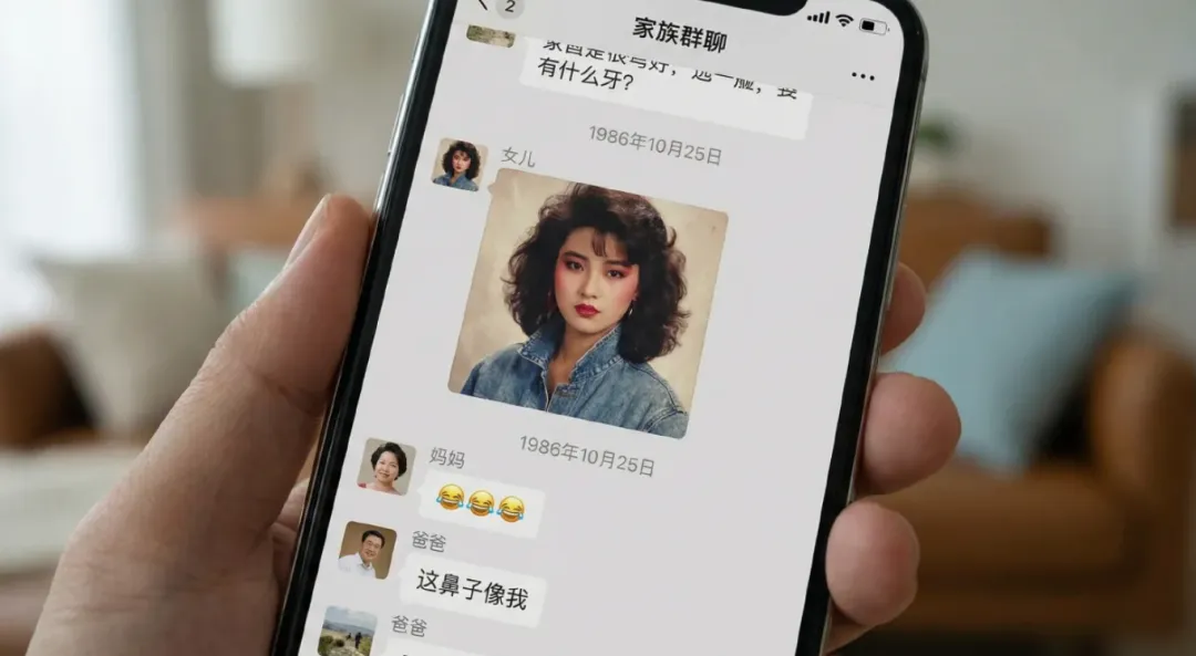 我把这张“穿越照”发到家庭群。
