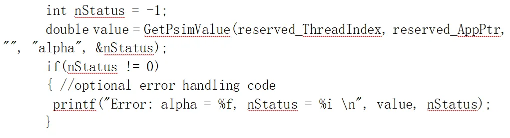 通过此函数,C模块可以访问参数文件和其他电路参数。 要在一个参数文件中检索同一个电路图中的变量值,请使用以下代码片段: