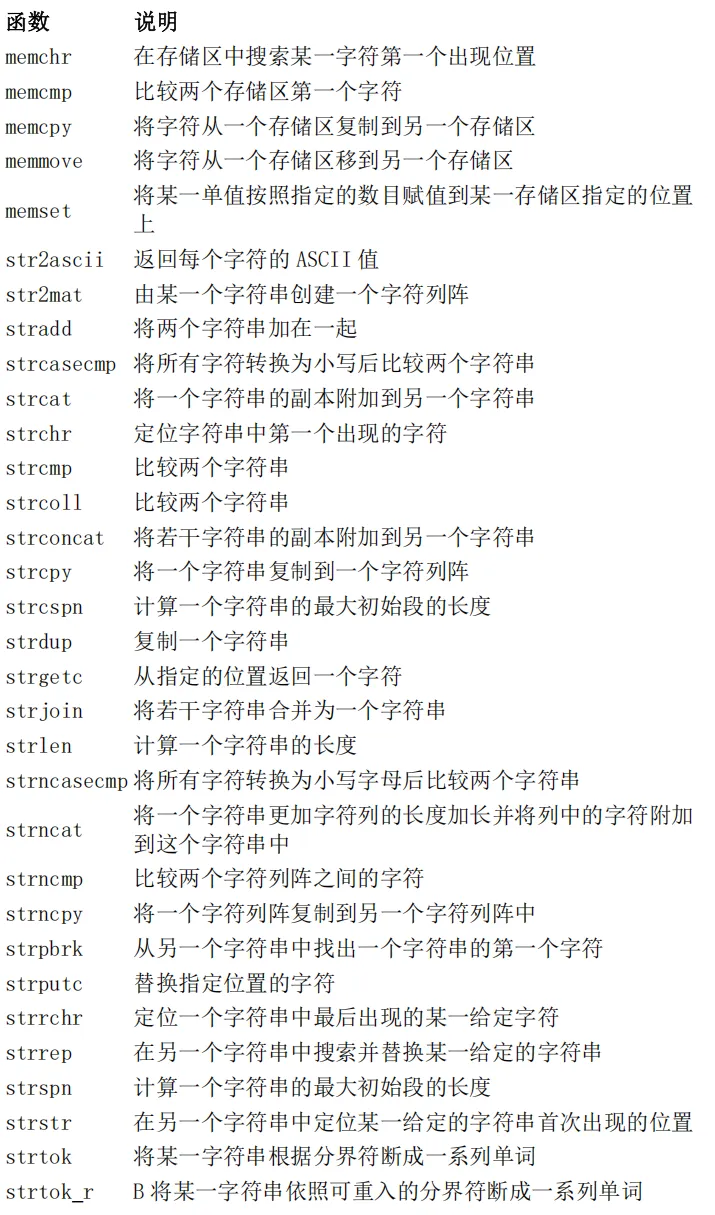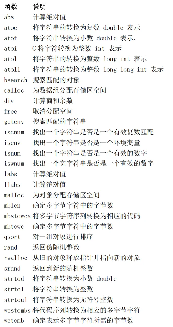 下面列出了C模块支持的函数。有关这些函数的详细说明,请参阅文档: