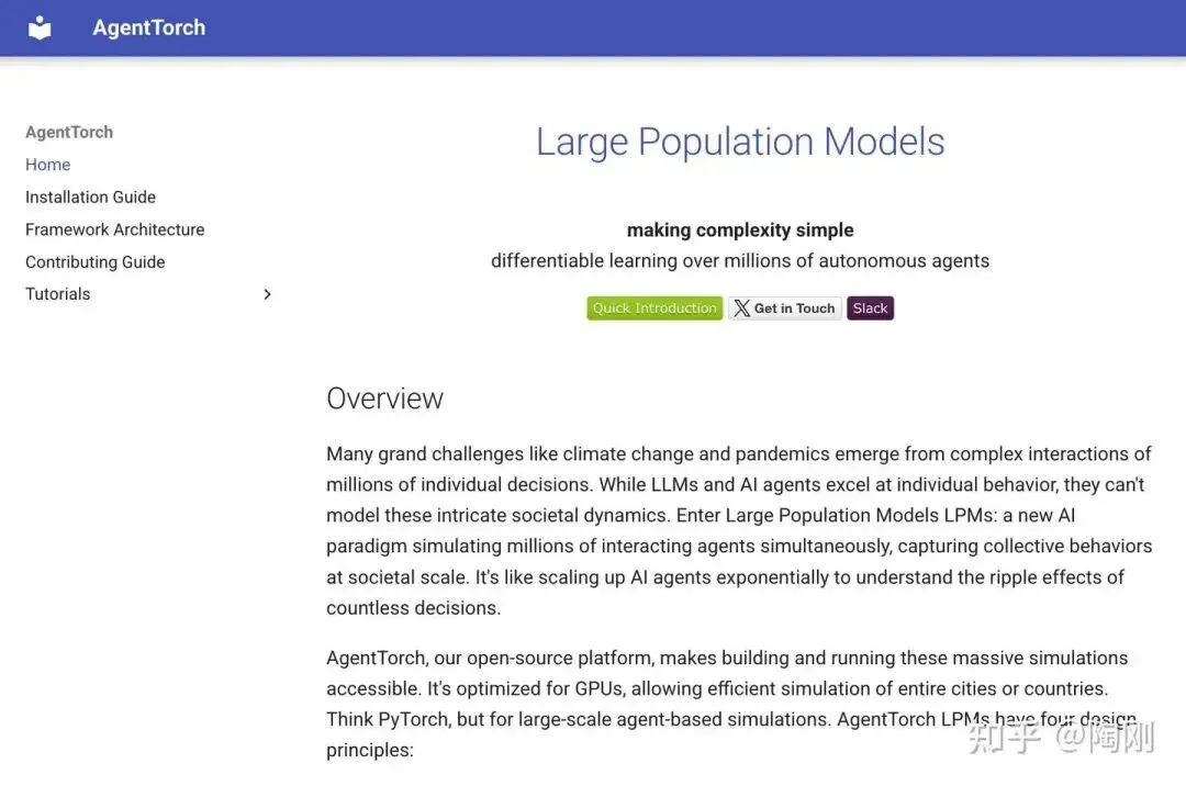 AgentTorch(MIT,2024):最大规模的方案,支持 840 万 Agent,用”原型(archetype)”方法将相似人群聚类来降低 LLM 调用成本。面向人口级别的政策建模(如疫情传播模拟),但每个 Agent 的行为深度有限。