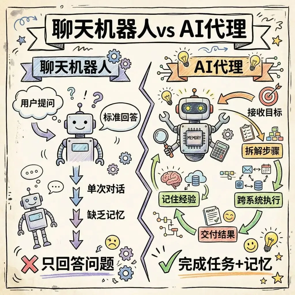 聊天机器人vs AI代理:本质区别