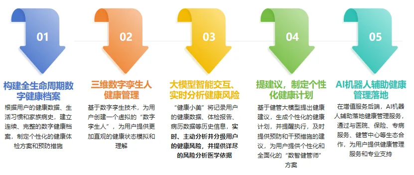 今年3月份,科技界的大佬们,如英伟达和谷歌都表达了对AI医疗的重视,这让整个市场对这个领域的兴趣又热了起来。过去六年时间,近千亿的资金砸进了AI医疗赛道,推动了影像AI、新药研发AI、机器人AI还有智慧医院等多个领域的快速发展。现在,医疗领域已是AI技术应用最广、成效最明显的领域之一。AI已经不再只是简单地替代或优化人类的工作,而是开始真正参与到重塑医疗流程中来了,AI+医疗开始进入2.0时代。说到AI+医疗2.0时代,最大的,有着最迫切重塑需求的场景之一,是线下医疗,如医院,又如体检中心。但是,现在还没有哪个AI大厂能够把线下医疗的这些应用整合起来,所以实际在这一场景中的众多人工智能应用往往是分散的、间断的,如此也就很难最大化地发挥其价值。遗憾地说,我们还没看到太多在线下医疗场景中真正落地并且运行良好的AI2.0案例。所以:在AI2.0时代,什么样的公司能够在医疗商业化的道路上走得更远呢?我们先回到开篇的那个问题上:为什么线下医疗需要围绕AI来进行全流程的整合?是为了进一步帮助线下医疗各类服务机构降本增效?提升客户的就医效率,缓解医疗资源紧张?还是为了优化客户、病患的就医体验?又或是以此对客户进行全生命周期的体征管理?所以,即使艰难,线下医疗也必然要走到这一步。原因在于,医疗资源紧张、就医体验不佳、成本高等都是线下医疗当下切实面临,也亟须改变的情况。还得从商业化程度比较高的,决策链路相对短的民营医疗连锁找起,毕竟这是个牵一发动全身的事情。只有体量规模庞大,转型升级潜力巨大的机构,才能横下一条心去做这样的变革。据《中国卫生健康统计年鉴(2022)》数据,我国体检人次由2009年的2.3亿增长至2021年的5.49亿,全国体检行业渗透率约38.88%,已经接近40%了。而美年健康在市占率已经达到民营体检市场近1/4,同行中除了爱康国宾市占率超5%外,其他几百家的企业市占率都很低。换言之,作为行业龙头,美年健康若想保持业绩持续增长,只有“自我变革”和“创新”可解。这也是美年健康虽然是一家相当传统的线下连锁经营的企业,却在AI化这件事上起步颇早的重要原因。如今,更是拉满架势要当好AI2.0时代的生态共建者。这其中的关键一步,就是今年跟华为云合作,落地“健康小美”数智健管师。“健康小美”,是一款利用生成式AI技术和精准的数据驱动服务来主动对用户的身体情况进行监测、检测和预测的机器人,一旦落地成功,将是国内首款健康管理AI机器人。简单来说,通过这款产品,用户在上传个人生活习惯、运动情况等信息后,可一键生成适配自己的数字健康档案、健康体检方案和预防措施。这个档案还可以通过三维数字孪生技术,为用户创建一个虚拟的“数字孪生体”,提供更加直观的健康状态模拟和理解,以跟踪自己身体的变化。同时,“健康小美”还可以对用户进行主动式健康问答,记录用户的健康数据、体检报告、病历数据等历史信息,实时、主动分析并分级用户的健康风险,给出进一步的健康建议和生成个性化的健康计划,并提醒执行。详见下图,虎嗅根据官微消息对“健康小美”功能做的梳理。而对于企业端来说,通过将用户在美年留存的体检档案和“健康小美”持续收集的信息(智能化的健康管理平台和孪生数字人功能等)整合,最终或能构建用户全生命周期的数字健康档案。基于此,美年健康在AI1.0时代拓展的检后专科、基因检测、慢病管理、健康保险等一系列增值服务都能被整合,并可为用户提供一对一、私人化的健康管理服务。同时,“健康小美”数智健管师后台将和美年健康的扁鹊智能体检管理SAAS云平台全面打通,进一步升级数字化赋能体检全流程管理。未来,用户从预约、体检、报告解读到后续的健康管理和干预整个环节,都将得到优化和提升。新平台还将加强与医院、保险公司、健康管理中心等伙伴的深度合作,构建一个更加完善的健康管理生态系统。此外,还可提供影像远程阅片、专病慢病专管服务体系、就医绿通、创新健康保险、营养品定制等后端健康管理增值服务。由此,美年健康业务流程也将发生变化,将从之前用户主动体检获取信息后为用户提供对应的服务,转变为“通过健康小美,对用户健康信息监测而对用户身体情况提醒,并主动提供健康管理方案”的模式。这听起来是个挺有雄心的项目。可问题是:为什么美年健康能做这件AI2.0的事?- 美年旗下有近 600家体检中心作为流量入口,每年约为3000万人次提供服务,这为 AI2.0 的建设提供了庞大的用户基础和大数据来源;