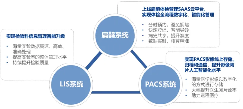公司成立以来,借着国家政策支持社会办医的“春风”,以及体检业务以医疗设备检查为主、医生交流解读为辅,在国内不同区域可“快速复制”的经营特点快速扩张,成为行业龙头。目前,美年健康已经拥有近600家体检中心。其中,控股体检中心有290家,较2011年度的32家体检中心,翻了9倍有余。规模化运营之下,美年健康长期要面对运营压力,这其中最主要的是管理压力和人工成本压力。另一方面,随着行业竞争加剧,加快诊断效率,提升用户体验;以及不断进行医疗品质及服务提升无疑会成为“差异化优势”,也是持续保持行业竞争优势的必经之路。也就是说,“降本、提效、增质”三者,缺一不可,这也是每一家健康体检机构不断发展壮大后,都需要面对的课题。而美年在AI1.0时代大力布局拓展的更多应用场景,为转向2.0时代提供了关键支撑和铺垫。2017年起,美年推出了多个融入了AI技术的“专精特新”系列产品,包括肺结节AI、心血管AI、眼底AI、超声AI、脑健康AI项目等,带来了业绩增量。其中,2017年引入推出的肺结节AI辅助诊断,是美年目前最普及的AI应用;2022年推出综合性肺健康服务包“肺结宁”产品,率先于业内实现了肺结节的全程化监测闭环管理,利用薄层CT基础上的AI技术和三维重建技术,辅助发现和判断肺结节,构建3D全肺图,精准定位肺结节。而2022年推出可用于脑健康评估的专项服务产品“脑睿佳”,是全国第一款聚焦脑卒中与阿尔茨海默病早筛的创新产品,基于高精度脑部磁共振成像,应用影像AI分析技术和中国健康人群全年龄段全脑标准数据库,识别脑部发病早期的结构性异常和功能性退化。此外,近两年美年健康还推出AI冠脉钙化积分检测项目,基于人工智能抗心跳去伪影技术,自动识别CT胸部影像中冠状动脉钙化情况,作为无症状人群冠心病风险筛查的依据;上线AI-MDT多学科专家智能健管系统,主打高效智能的AI健康评估和主动关怀式健康管理,通过体检报告和问卷结果进行联合会诊分析和评估,多学科专家给出个性化定制健康管理报告,为客户提供个性化健康管理方案。目前看,美年健康的AI赋能诊断产品的筛查效果还是不错的。2023年度,美年健康的肺结节日均检出约16011 例,全年检出数近585万,检出率26.84%;同时,累计完成288万次非门控钙化积分筛查,其中阳性占比约6.03%,重度阳性占比约0.28%。以及完成脑健康检查突破10万人次,中高风险异常检出率达14.14%,记忆相关海马体异常检出3.24%,脑衰老相关的脑白质高信号异常检出27.71%。除此之外,美年在完成“健康体检”检前服务和检中诊断业务上,基于大数据优势,延伸到了检后专科、基因检测、慢病管理、健康保险等一系列增值服务,带来更多应用场景下的业绩增量。如,2022年10月美年健康推出卓睦鸟 AI-MDT 健康管理系统,该系统是联合三级甲等医院多学科专家搭建的多面的、专业的智能医学平台。基于人工智能技术,综合多学科临床专家的临床经验和国内外最新临床指南及专家共识,对客户进行综合健康评估后给出个性化报告解读。同时,还会根据每一位客户的体检情况量身定制系统的健康管理方案,帮助用户进行个性化的健康管理。在上述这些AI赋能的应用场景拓展下,公司的营收也实现了增长。2023年发布业绩预告,美年实现营收107.3-110.5亿元,营收均值108.9亿元。与2017年对比得到:2017-2023年期间,美年营收年复合增速9.7%。且展望未来,在当下老龄化加剧的情况下,筛查需求会持续旺盛。而上述更多应用场景实现的基础是美年健康拥有近600家体检中心而带来的每年数千万级的“流量入口”。美年健康利用AI赋能,从最初推出“微信+支付宝双端小程序”、“美年臻选线上商城小程序”等线上平台,到上线包括扁鹊智能体检管理SAAS云平台、影像PACS系统、检验质控LIS系统在内的医技平台集群,分别从用户服务、辅助诊疗、数据管理等不同角度切入,赋能体检全流程质效提升,打造了较为领先的数字运营平台。从功能上看,扁鹊系统落地后,美年的运营平台犹如有了无人驾驶汽车的“大脑”。在AI技术加持下,扁鹊系统“无需依靠人力”,能自动实现分时预约、快速登记、智慧导诊、数据实时互通、样本追踪、检查类异常结果自动上报等功能,在检前、检中和检后为客户提供各种精细化服务。同时,影像PACS云平台可将海量医学影像以数字化的形式存储、归档和通信,提高医生阅片效率,助力远程医疗的实现;LIS系统则可以实现检验科信息管理智能升级,可对海量数据高速、准确处理,助力检验质量的提升。通过上述三大系统,美年旗下体检中心的业务效率和医疗品质都得到较大提升,而专业、高效的服务会增强用户粘性,并使美年的“用户流量入口优势”不断得到强化。此外,美年健康牵头并承担的国家重点研发计划“健康体检大数据云平台构建”项目结题,依托全国600余家体检中心多年积累的大规模、多模态体检数据,已完成超1.3亿人次健康体检数据的汇集和治理,能很大程度上解决临床研究数据来自院内,缺乏院外数据的痛点,实现跨机构、跨系统的数据整合。而上述也进一步增强了美年的数据优势。总结看,美年健康凭借大规模的流量数据入口优势,拓展了更多AI赋能下的应用场景,并带来了业绩增长。据此,美年接下来最有动力做的就是将业务场景整合,这也是数智健管师——“健康小美”推出的原因。据悉,“健