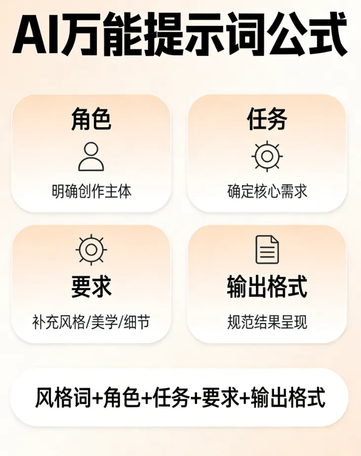 万能公式 = 明确角色 + 具体任务 + 详细要求 + 输出格式