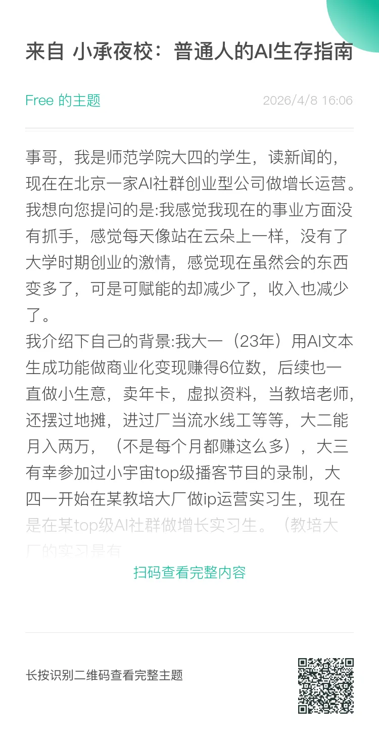 今天,我想借着回复这位学妹的机会,跟咱们夜校所有的同路人,聊聊这种“踩在云端”的恐慌感到底是怎么来的,以及我们普通人该怎么破局。