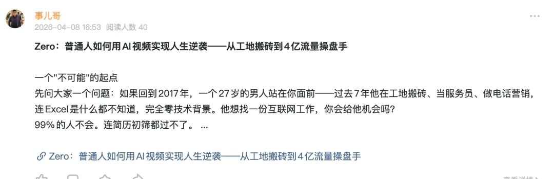 说她特别,是因为她极其优秀的履历,甚至让群里很多干了十几年买卖的老板都倒吸一口凉气。这位大四读新闻的学妹,现在在北京一家头部的AI创业公司实习。但这还不算什么,真正猛的是:在2023年她大一的时候,硬是靠着第一波AI大模型的红利,通过文本生成做商业化变现,赚到了人生第一个6位数。