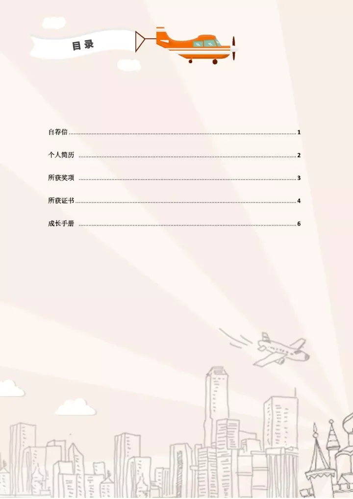 3. 切忌将目录做封面:如果首先映入眼帘的是一堆密密麻麻的字,这样容易产生疲劳感,对于简历后续的阅读不利。