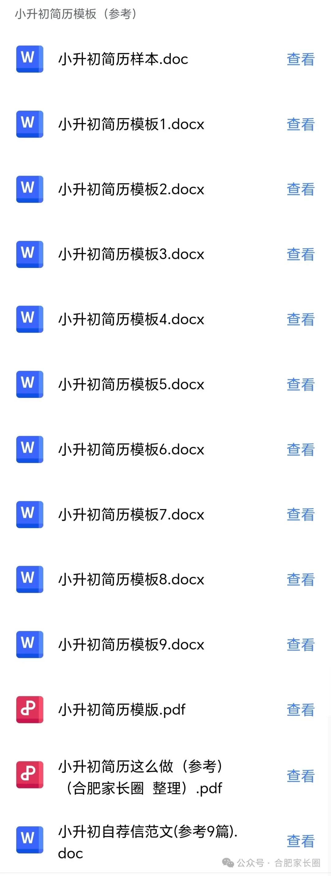 小升初简历模板领取方式:
