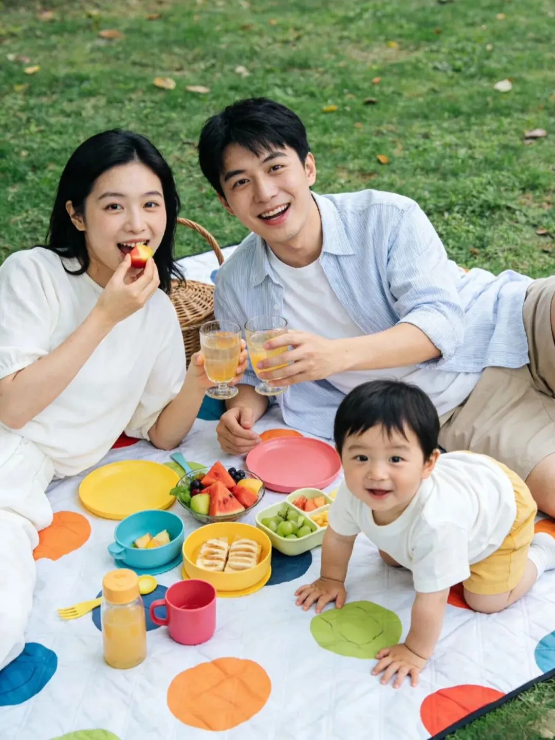 自然互动:喂宝宝吃水果、一起举杯庆祝