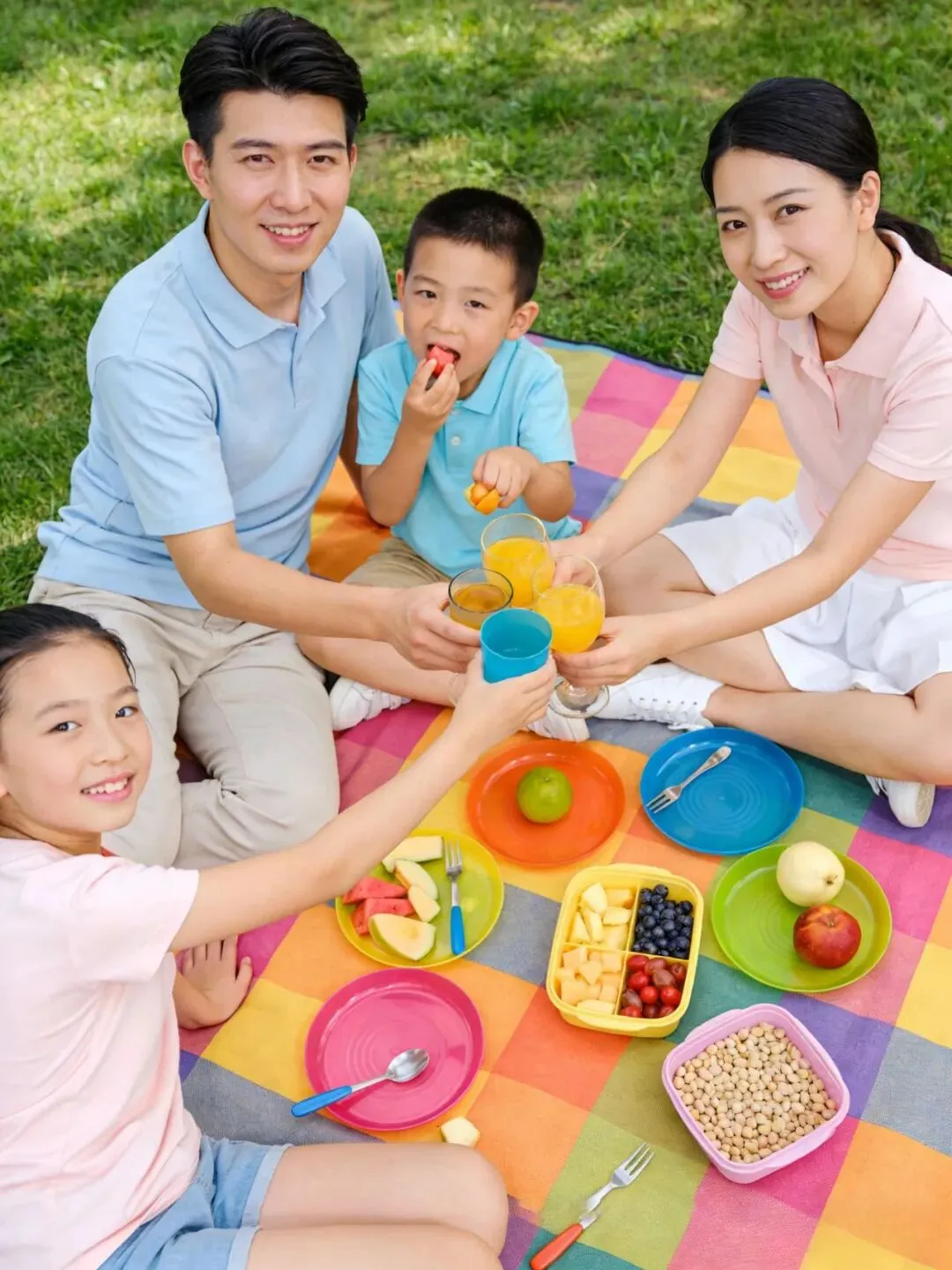道具:选择色彩明亮的野餐垫和餐具