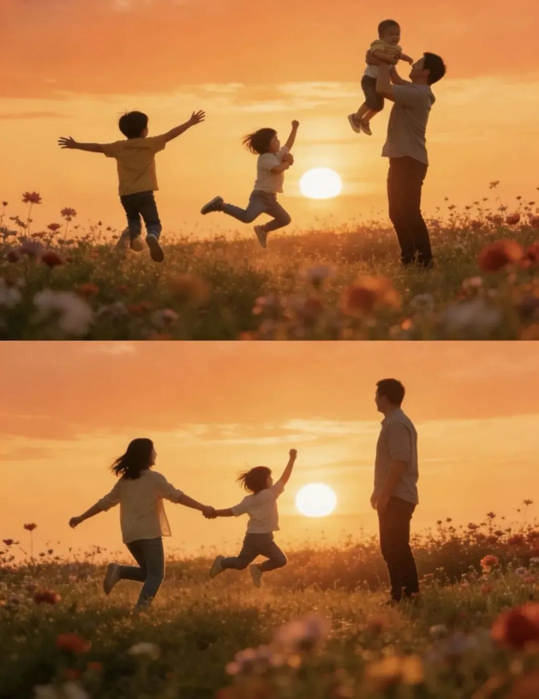 全家人一起跳跃,捕捉腾空瞬间