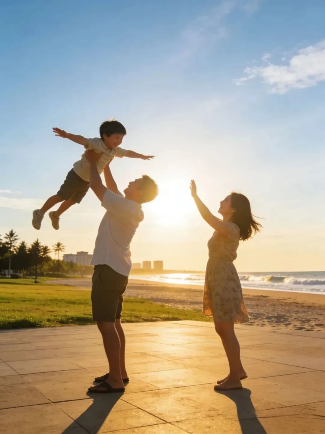 宝宝被爸爸妈妈举高“飞翔”的瞬间