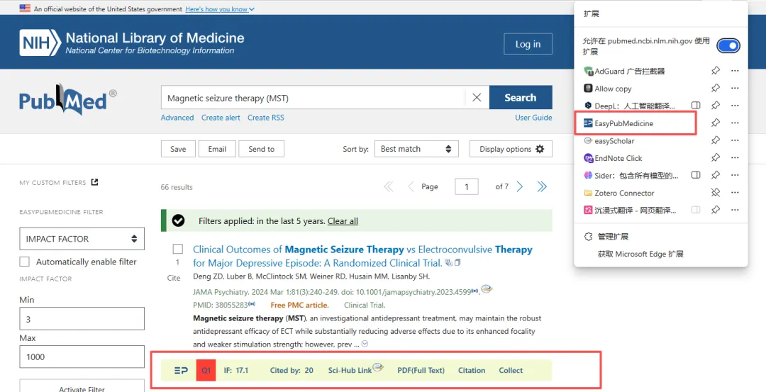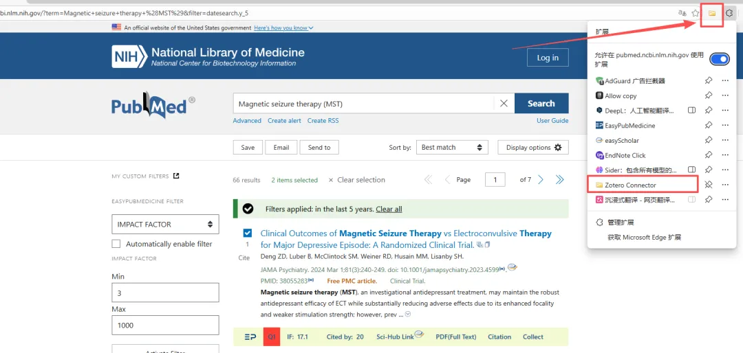 不用下载文献,即可将pubmed文献批量导入到zotero的小技巧当我们想获得大量同一主题下的英文文献时,一个一个下载导入zotero是很耗时耗力的。今天我和大家分享一下如何从pubmed批量导入文献到zotero。EasyPubMedicine和Zotero Connector扩展安装(以edge浏览器为例)
