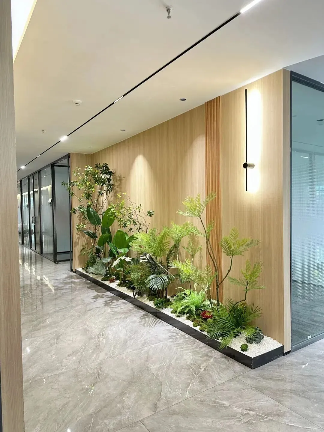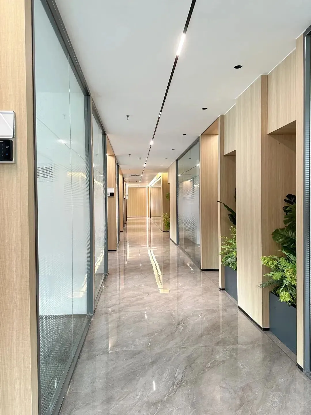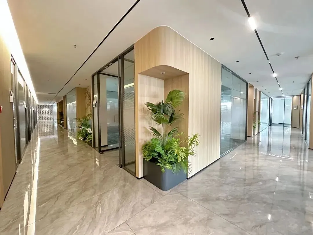 走廊做了现在流行的绿植微景,有些绿植点缀,不像传统商务楼那么冷冰冰。