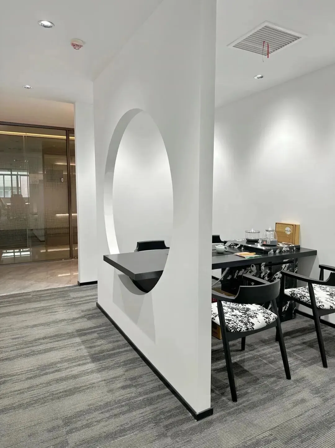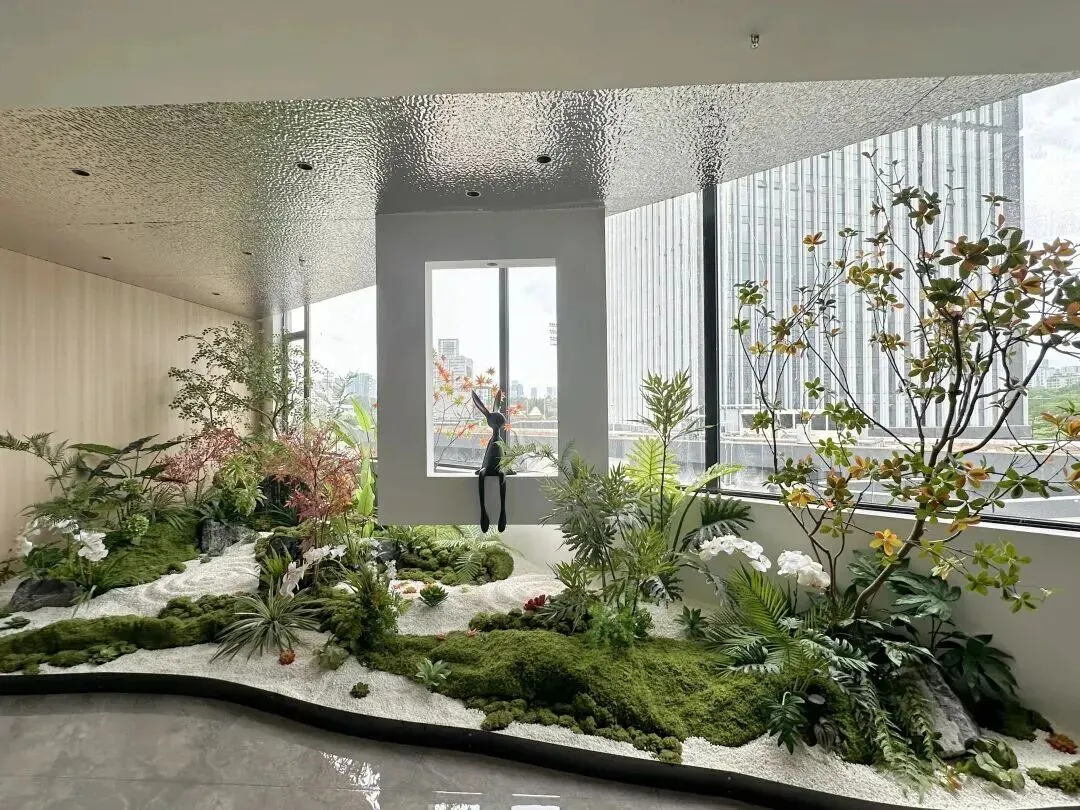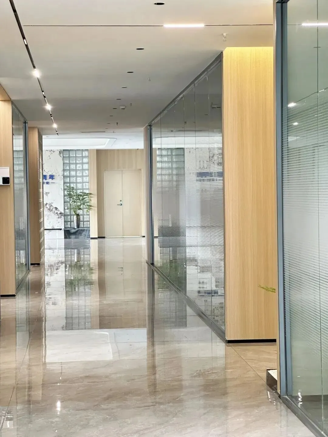 走廊做了现在流行的绿植微景,有些绿植点缀,不像传统商务楼那么冷冰冰。
