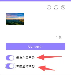 勾选“选择相同文件夹”(输出文件与原图片同目录)和“生成小图标”(可选)