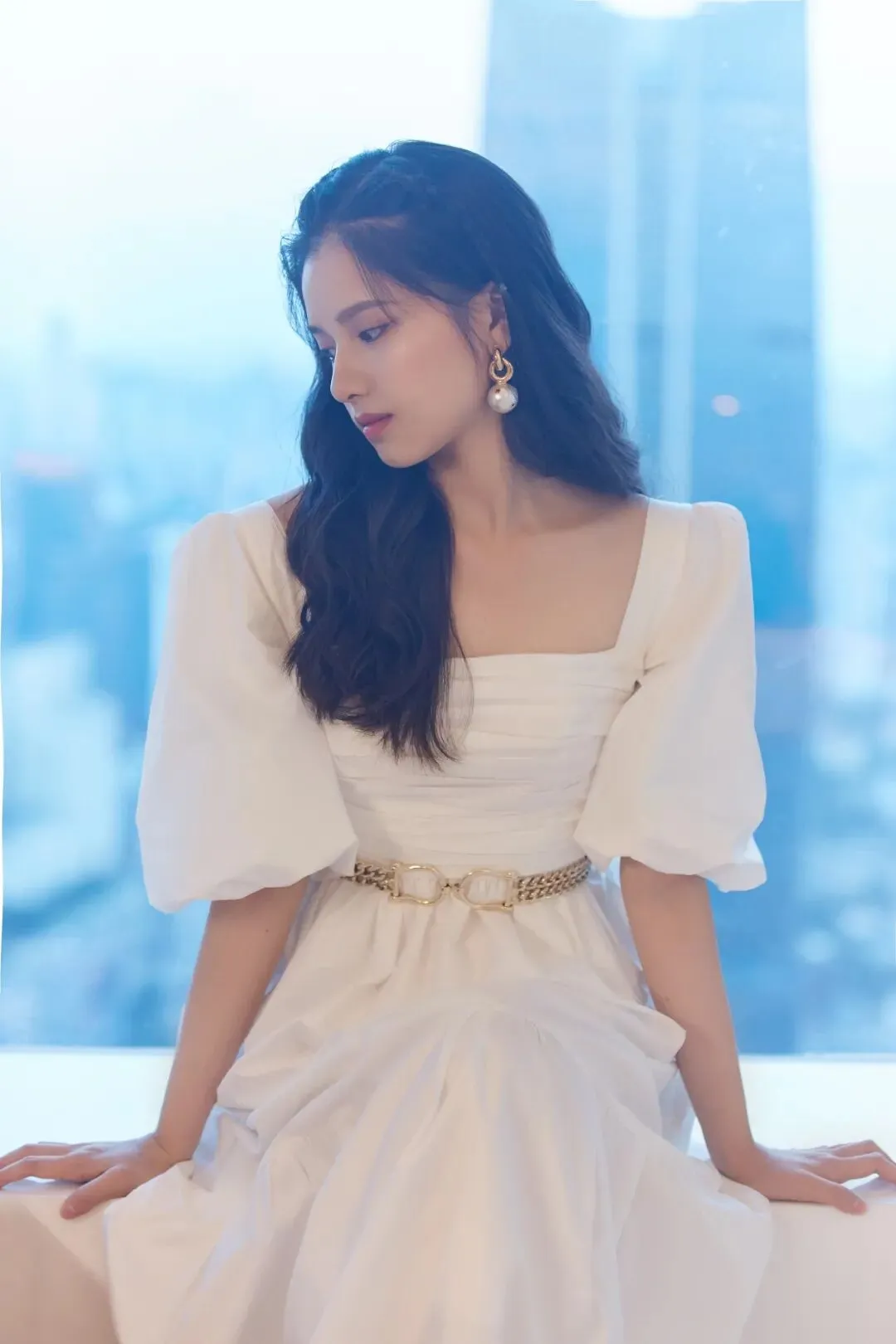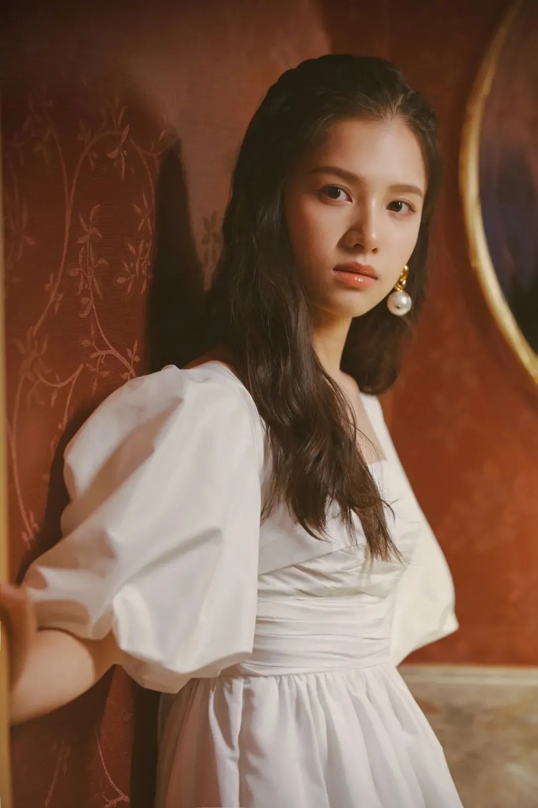 出席活动时一身白色系长裙look,尽显少女的法式浪漫,搭配珍珠耳坠增加了甜美感,同时展现清新少女的无限美好。