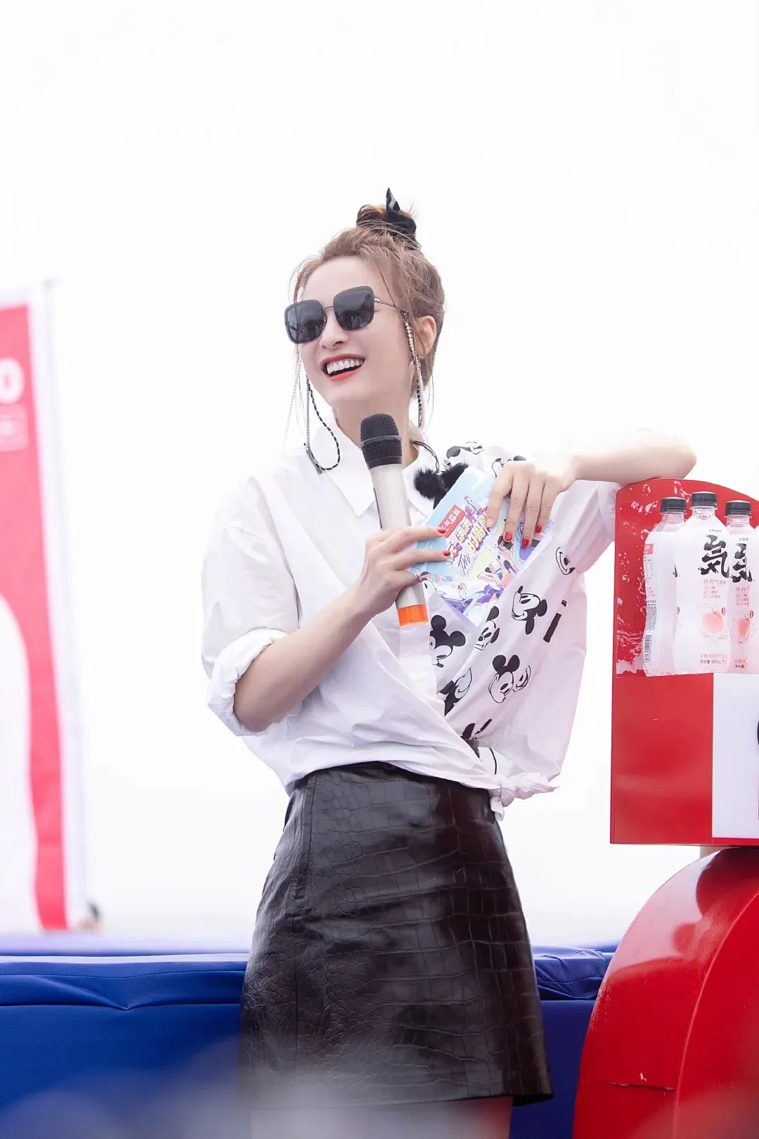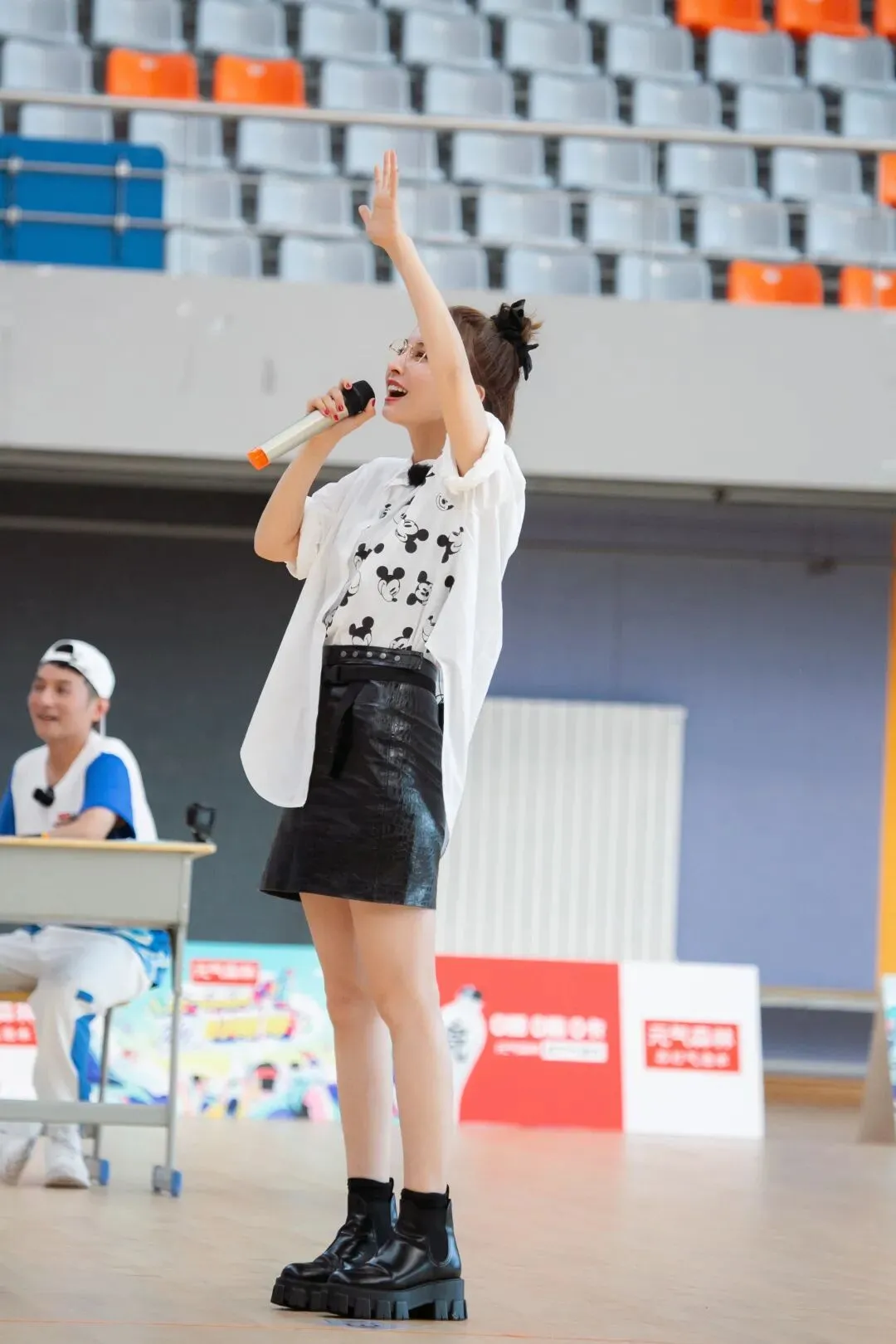 在自己独挑大梁的综艺节目中,每次的造型也都在线,白色印花衬衫搭配黑色皮裙,就非常适合初秋来穿。