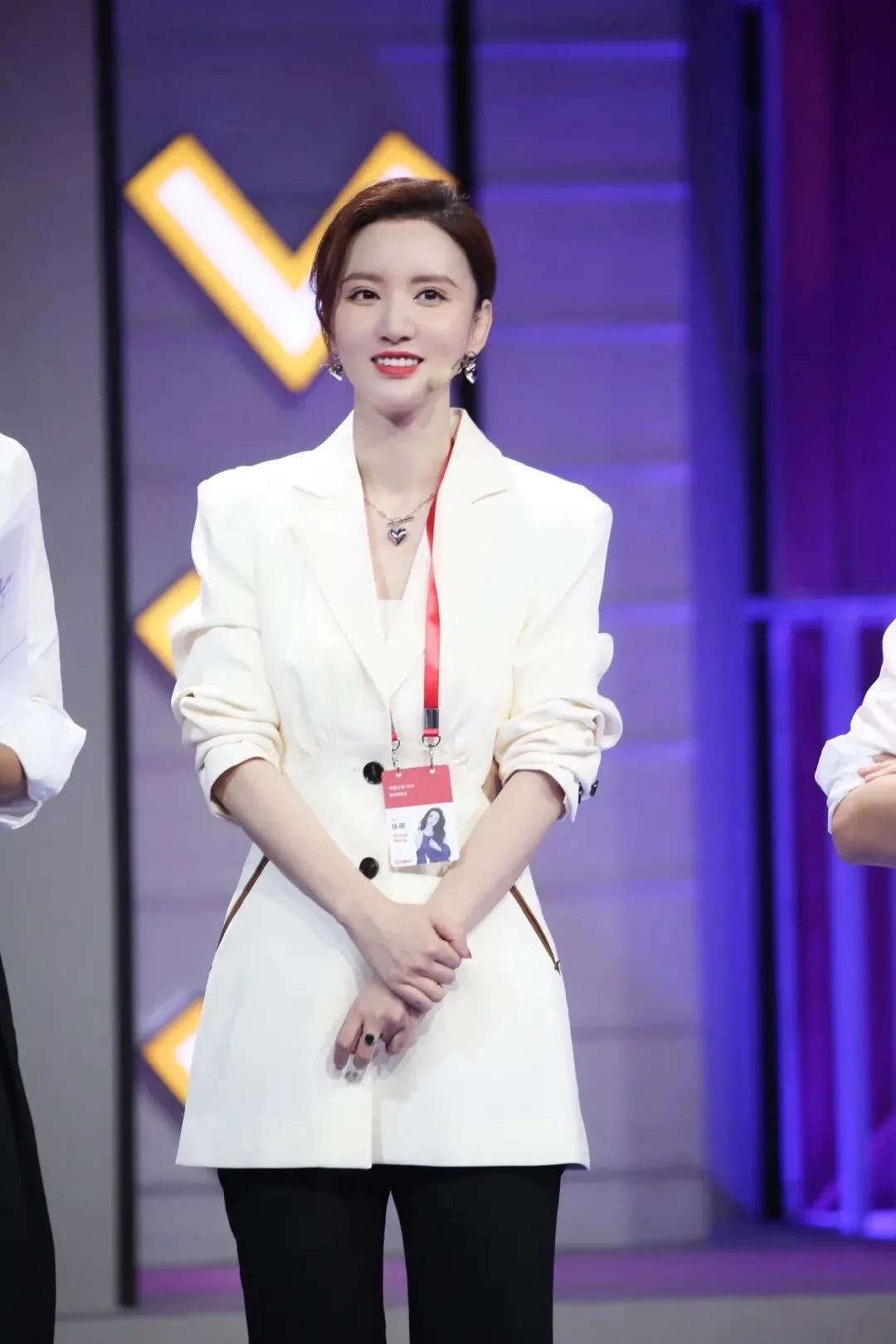 参加综艺节目时的刺绣西装内搭白色蕾丝打底,优雅性感。搭配上高腰阔腿裤,分分钟拥有一米八大长腿。