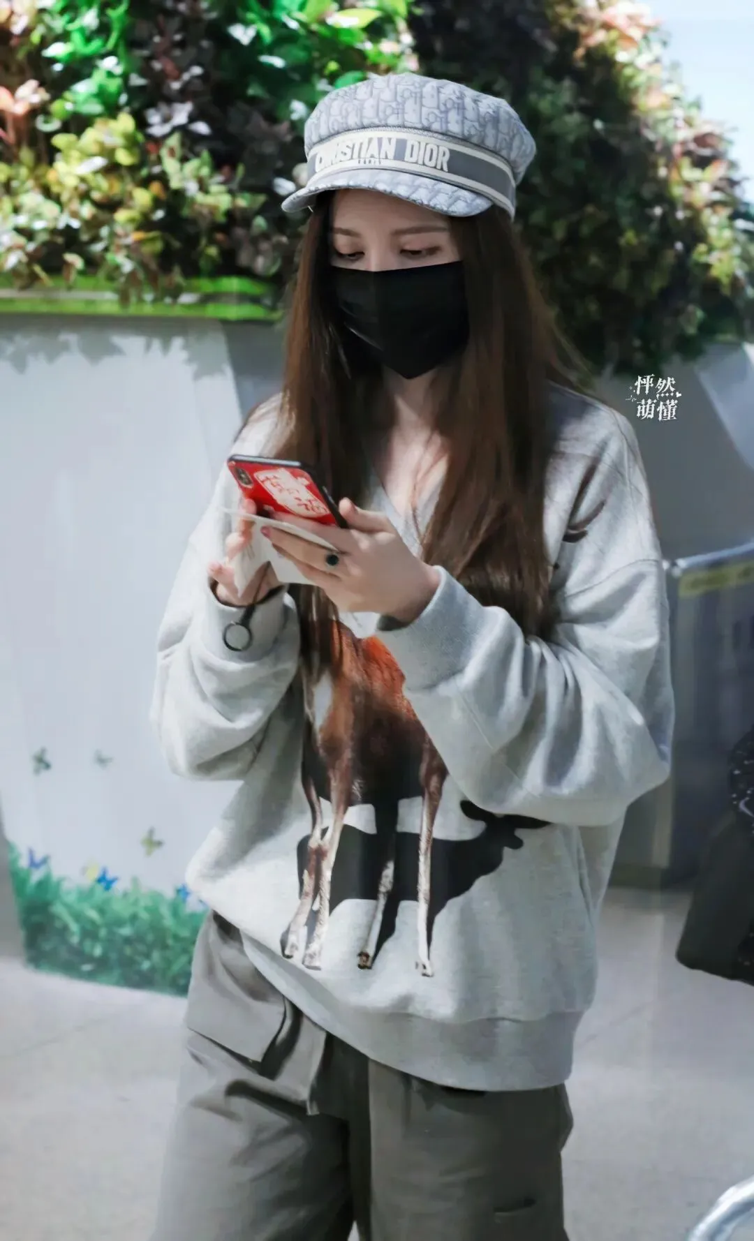 机场的印花卫衣搭配休闲裤look,酷飒中带有一丝丝甜美气质。在保证了舒适度的同时,也保留了自己的时尚特质。