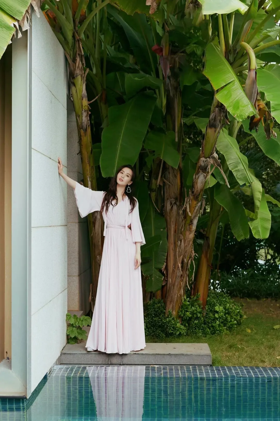 工作室最新发布了一组刘诗诗的美图,身着粉色系长袖连衣裙搭配上独特造型配饰出境,温柔典雅彰显高贵大方的气质。
