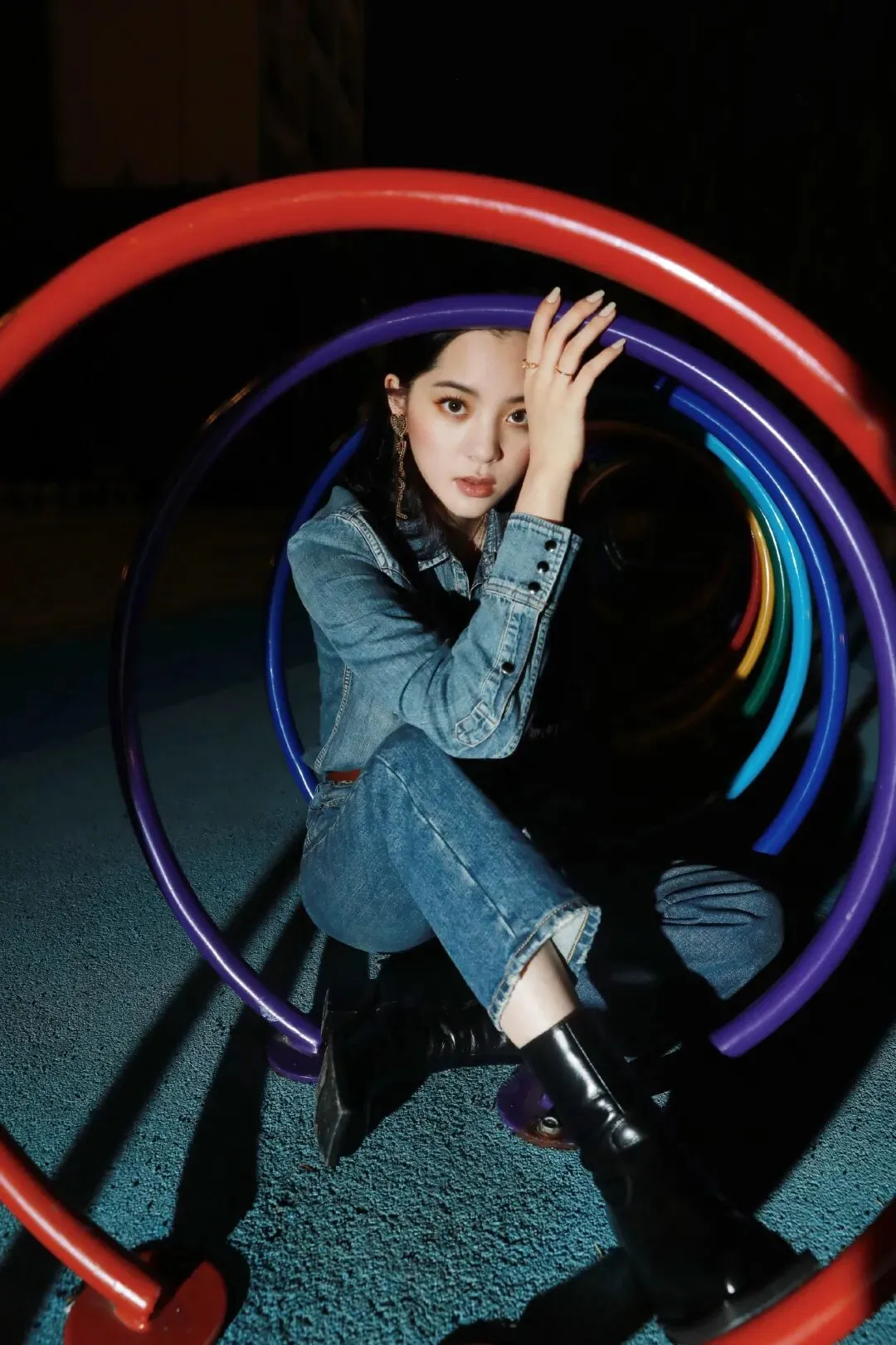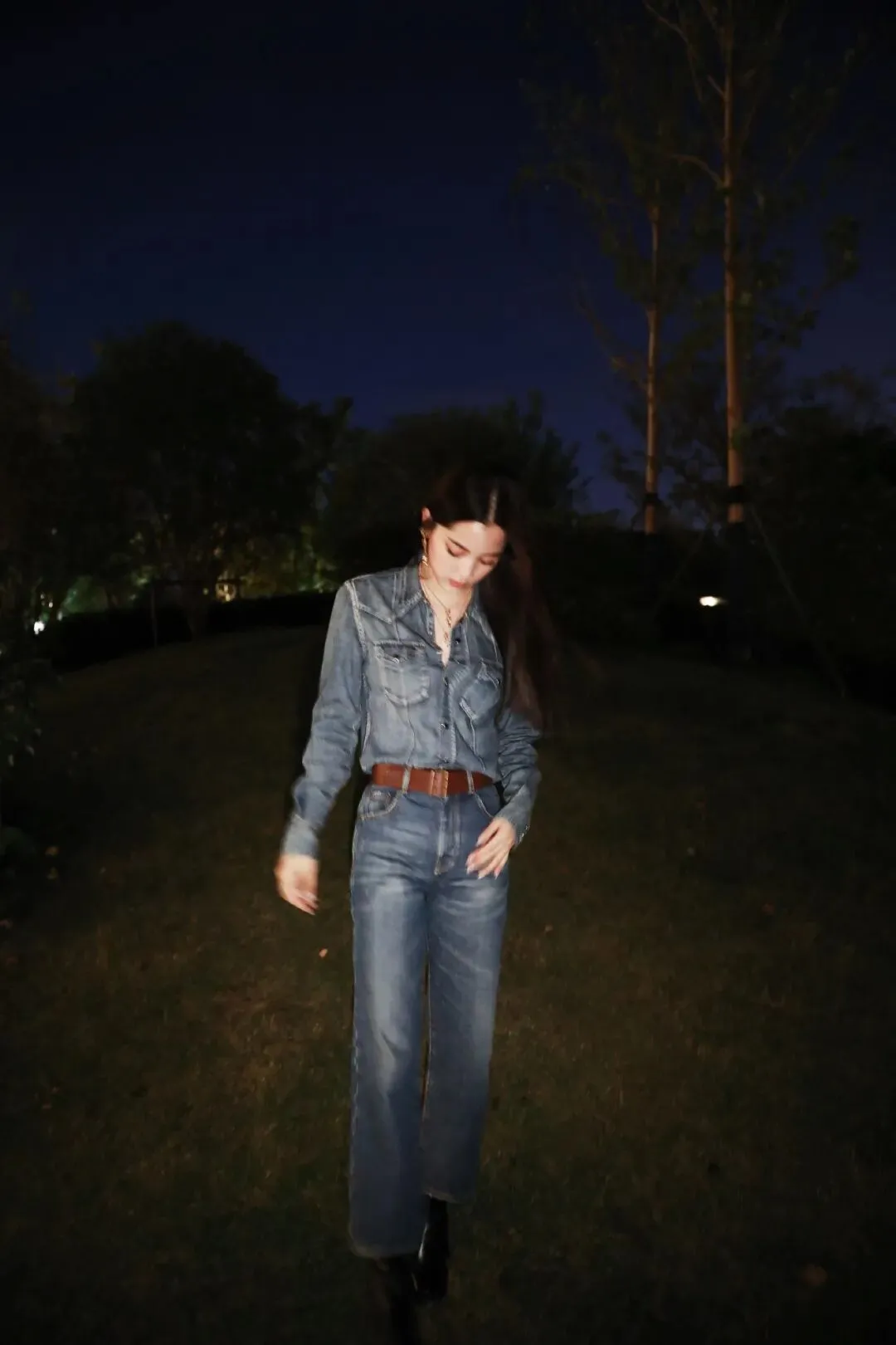 牛仔系列也被她穿出了酷酷的气质,单宁色牛仔套装搭配方头黑色短靴,配上金属饰品,酷飒值满分。如果怕过于单调,可以像欧阳娜娜一样,搭配上腰带,既能强调腰线,还能起到点缀的效果。