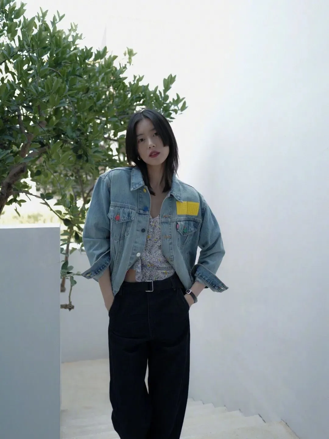 初秋季节还少不了的一个流行单品就是牛仔外套了,用牛仔外套搭配上碎花内搭和黑色休闲裤,别出心裁的设计充满了秋天的味道!
