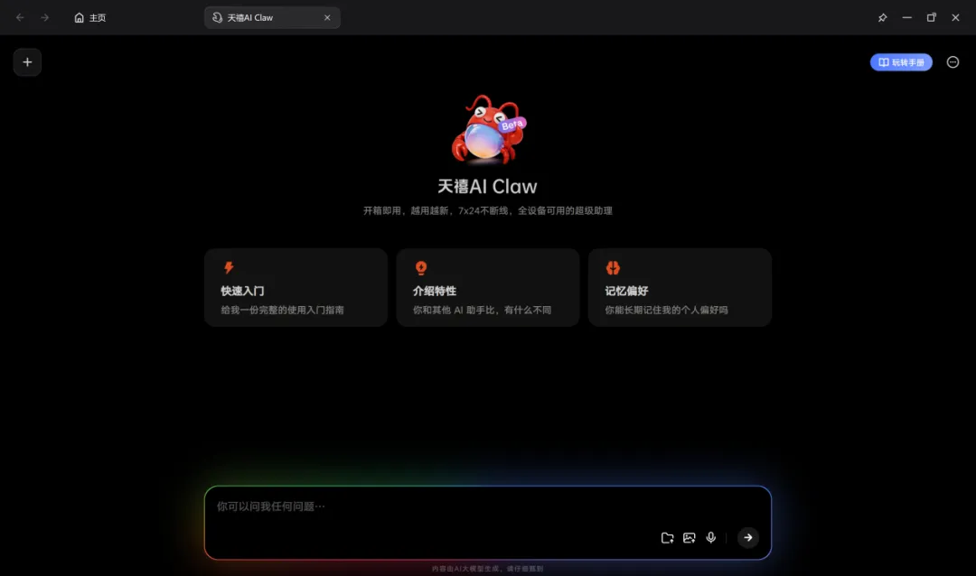 “高智商” 体现在天禧 Claw 具备零成本部署、零门槛使用、全天候跨端等核心能力,重构了人机交互。